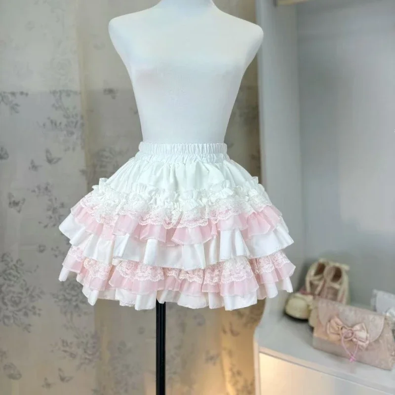 Sweet Kawaii Lolita Style Princess Vintage Cake Skirt Women Cute Lace Ruffles Party Mini Skirts Harajuku Y2k Faldas Mujer