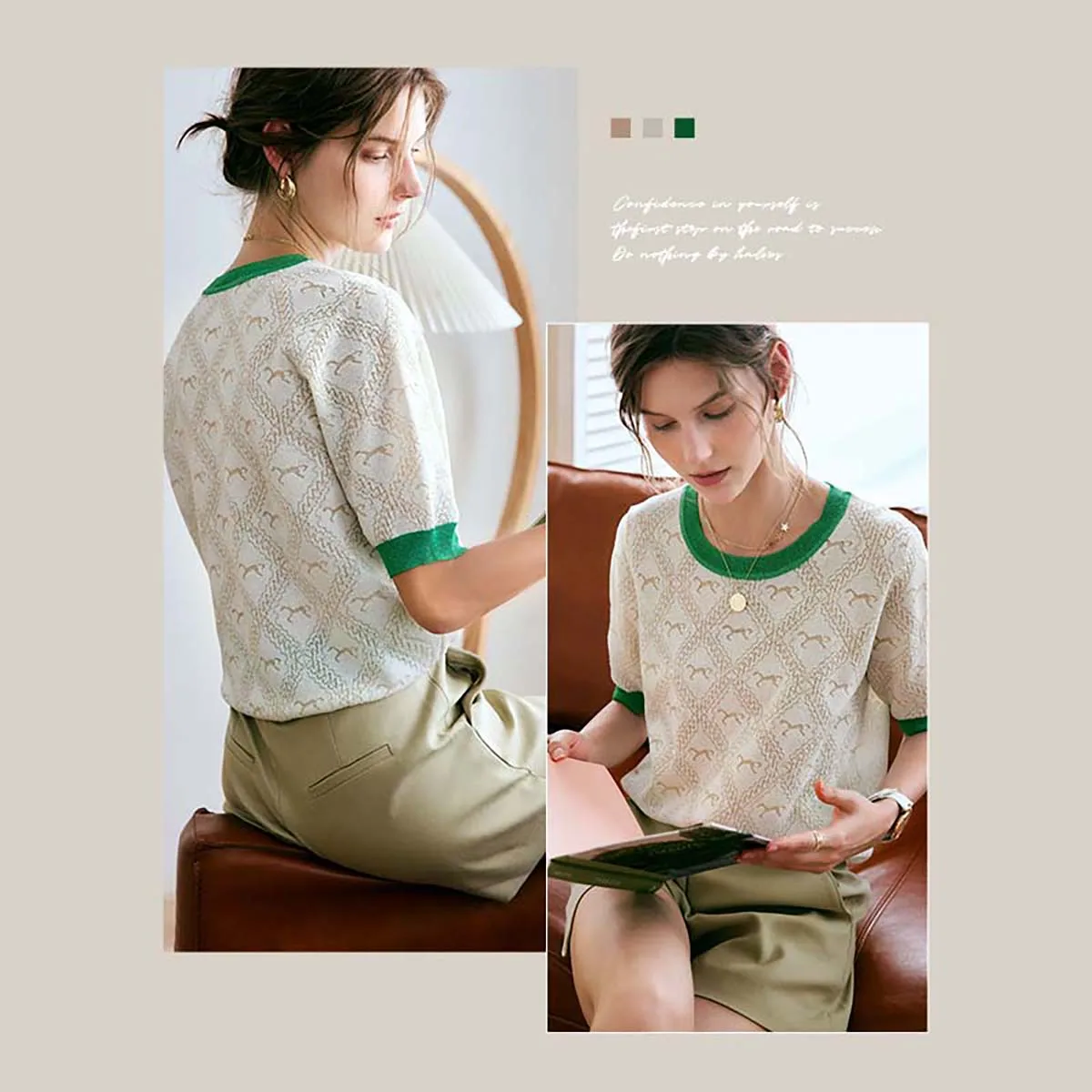 OLrain Women Knitwear Jumpers 2026 Summer French Fashion Commute Pullover Ice Silk Knitted Sweater Loose Jacquard Top O22XZ60862