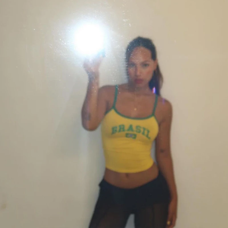 Hot Sexy Brazil Streetwear Sling Yellow Crop Top For Women Girl Casual Clothes Elastic Camis Sleeveless Backless Short Tank Tops