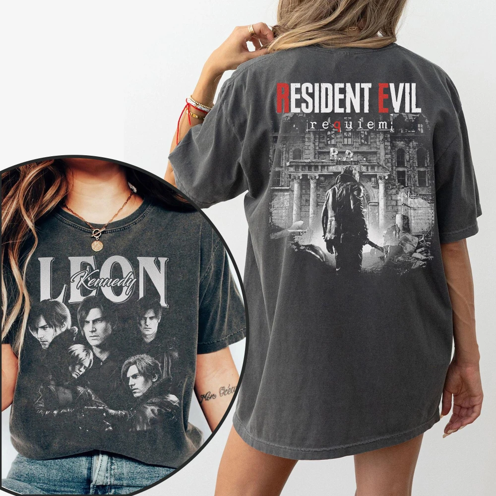 Leon S. Kennedy Resident Evil 9 Requiem Shirt Biohazard Tee Grace Emily Gideon Tee Short Sleeve Women for Spring Summer Unisex