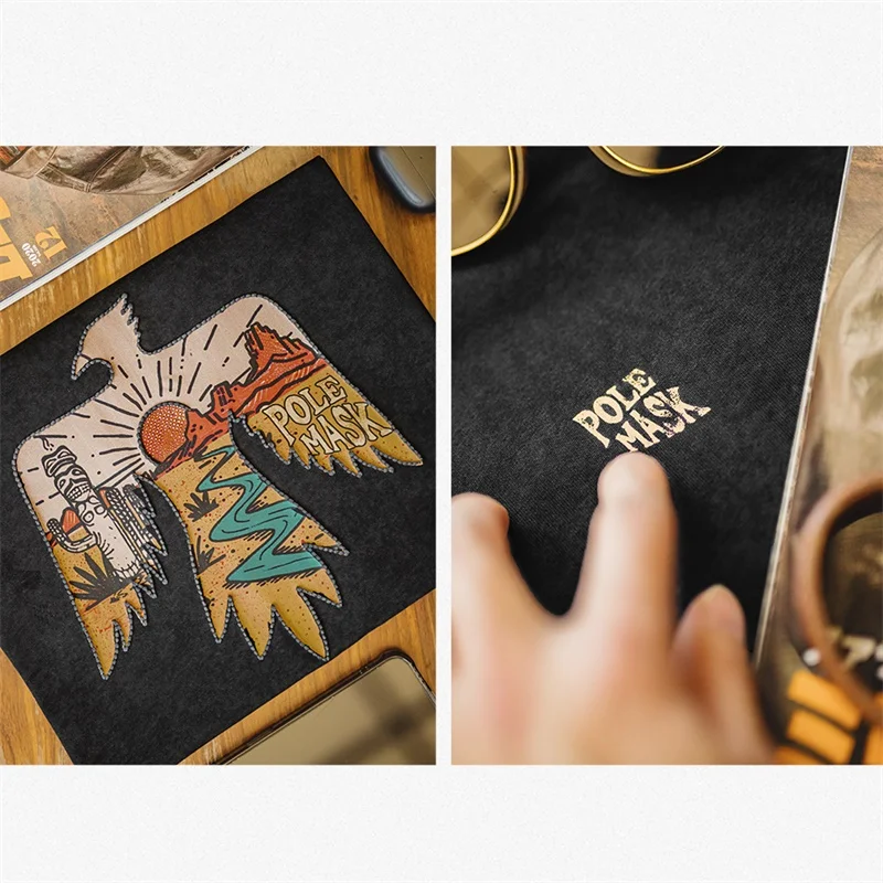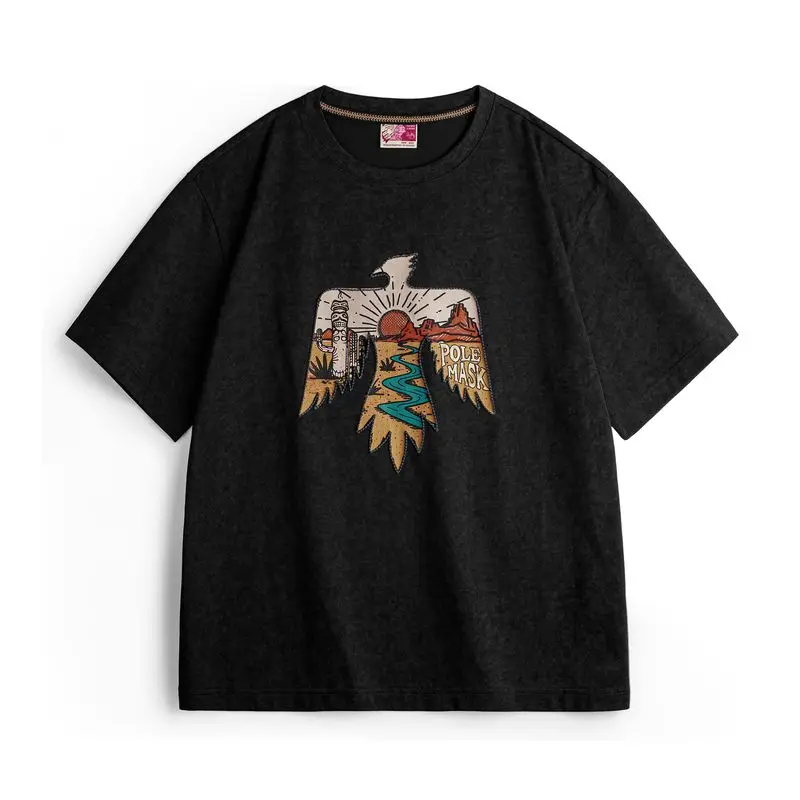 Maden Women's Summer Retro Style Thunderbird Print T-Shirt Heavyweight Embroidered Short Sleeve Tee Navajo Crew Neck Street Tops