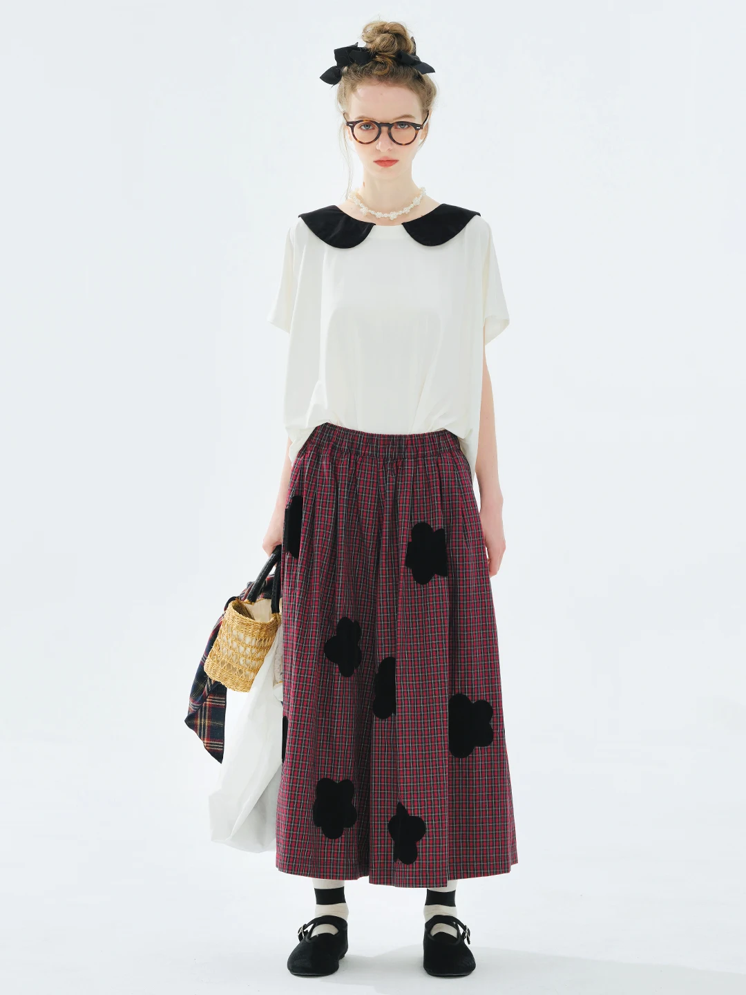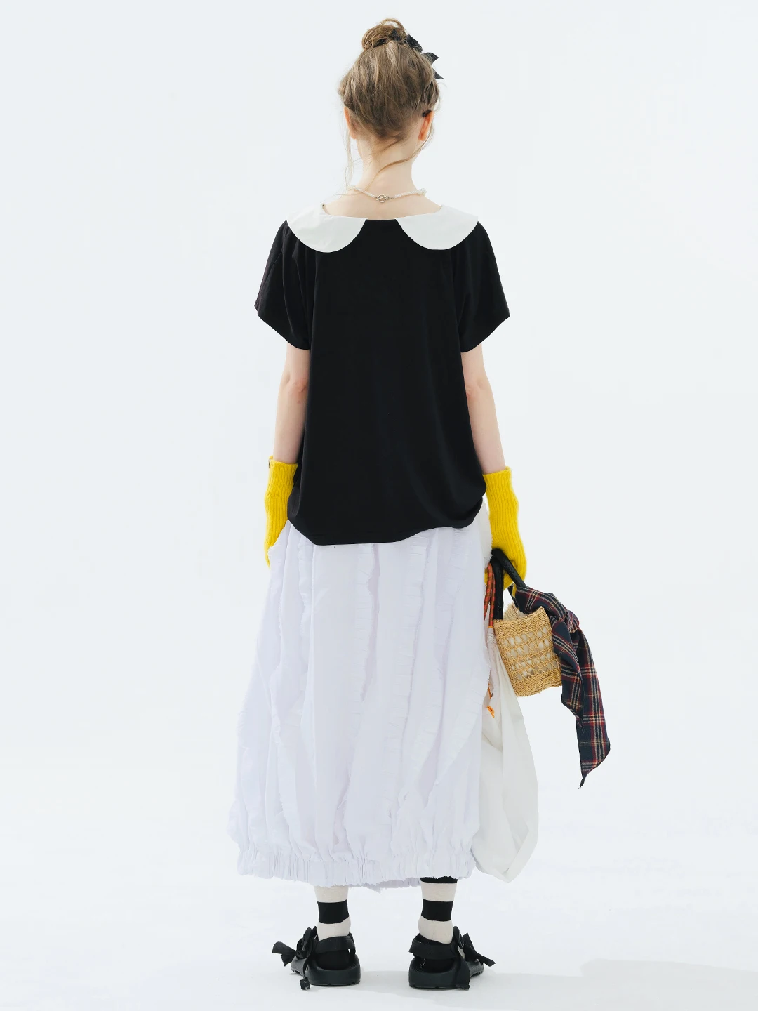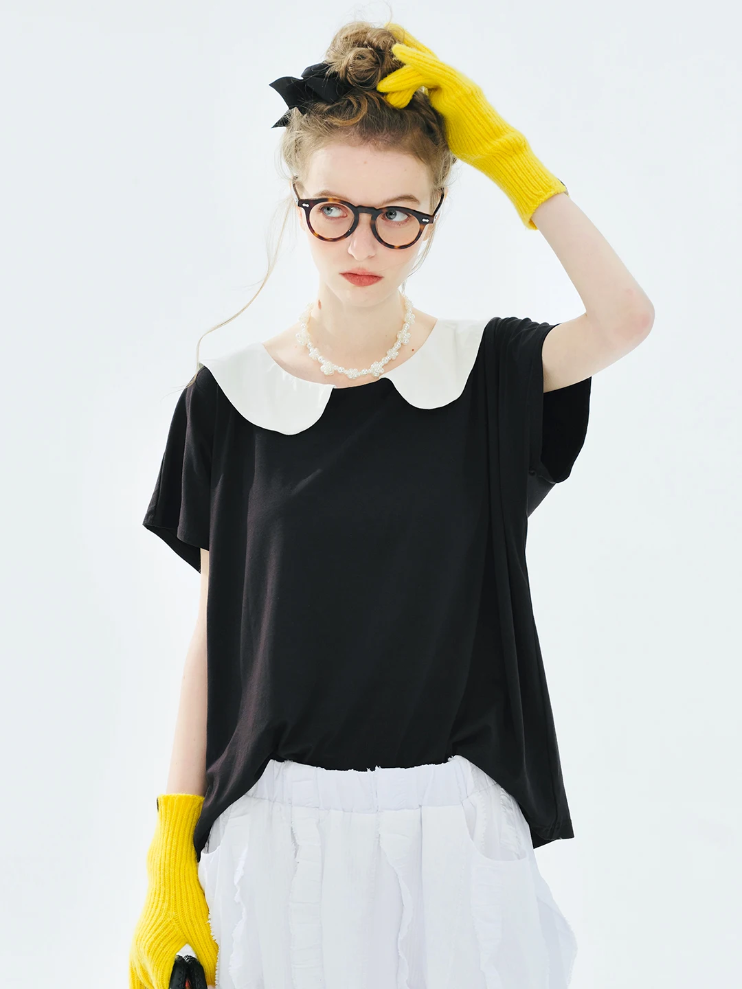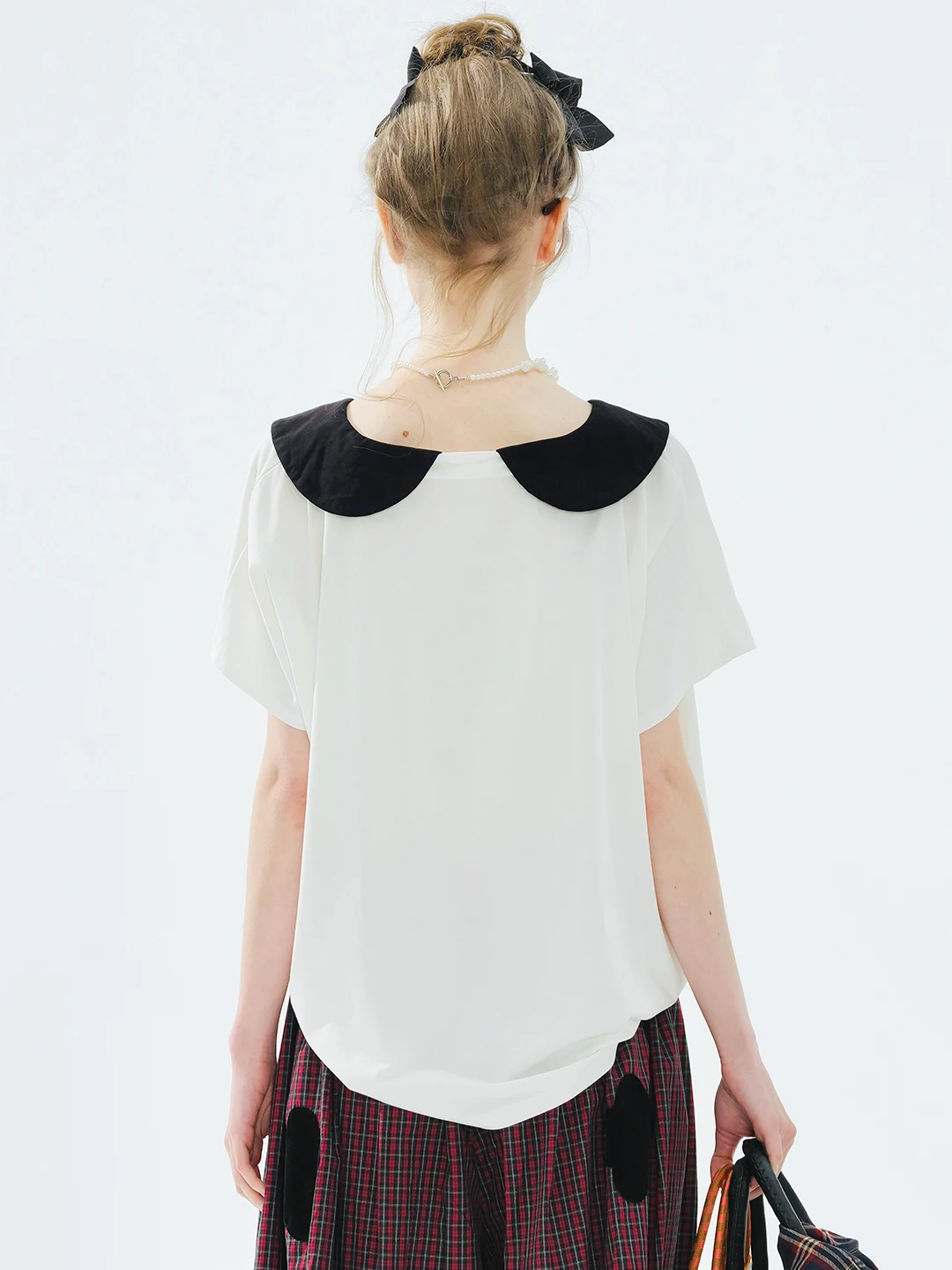 Women's White T-Shirt Short Sleeve Black Peter Pan Collar Everyday Essential Breathable Comfort Versatile Styling 255097