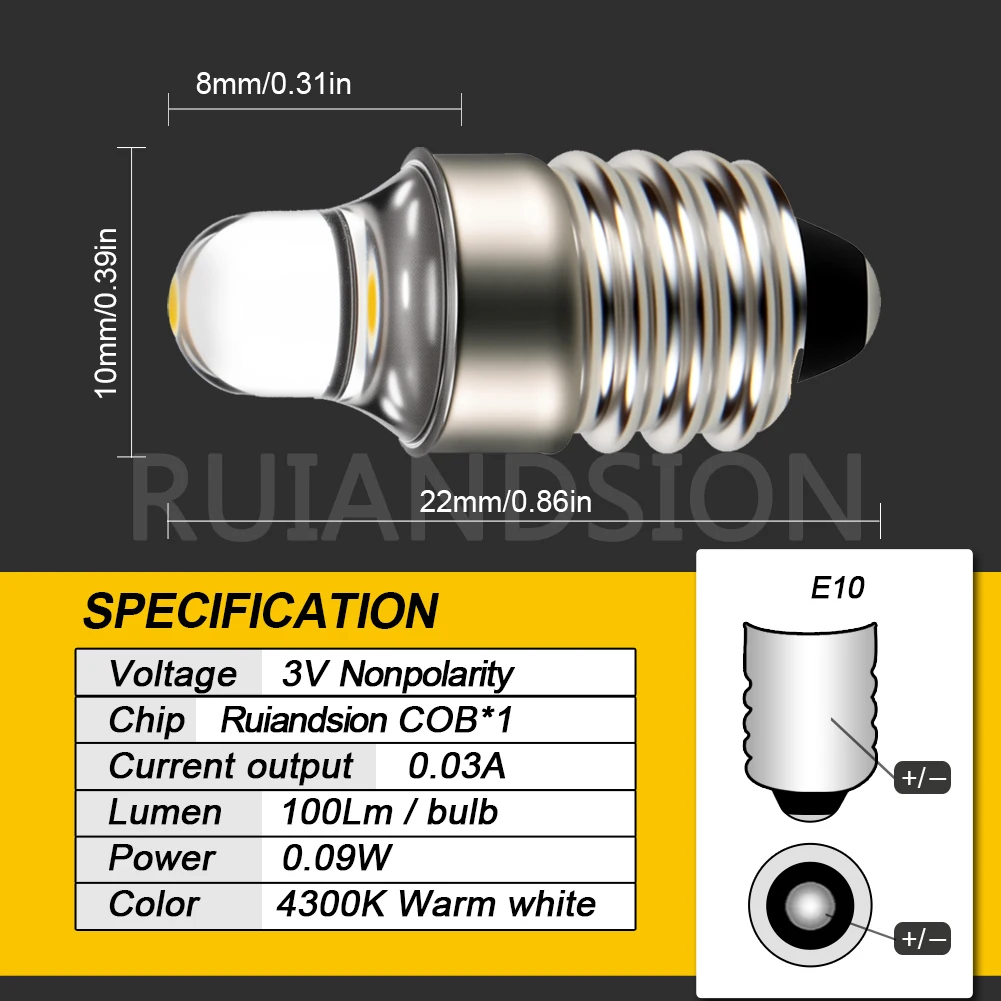 4 Uds E10 lámpara de luz exterior LED tornillo linterna bombilla Mini lámpara de trabajo 6000K 4300K DC 3V 12V luces indicadoras de máquina
