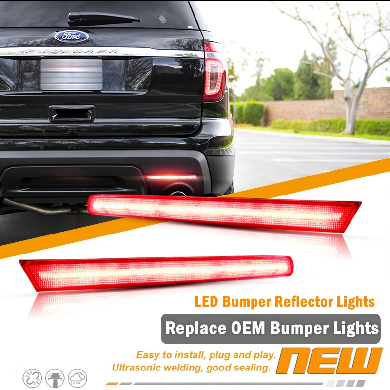 Lámparas antiniebla traseras de coche iJDM, luces reflectoras de parachoques LED rojas con función Ford Explorer 2011-2015 como luces antiniebla traseras o traseras de 12V