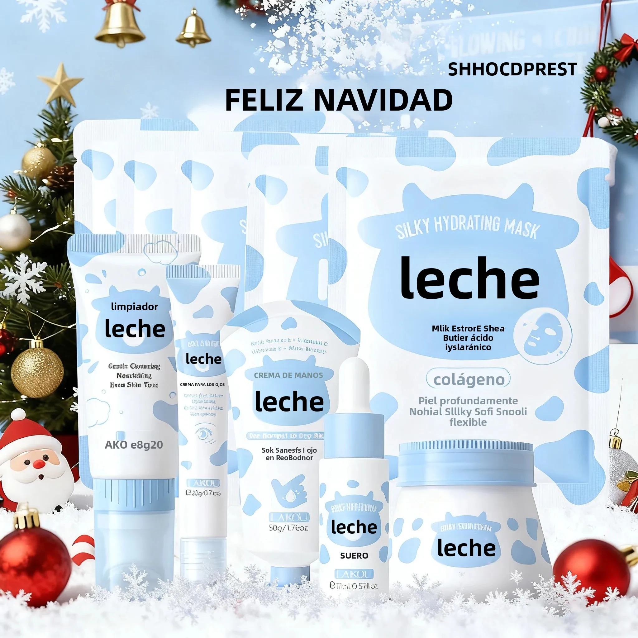 Juego de cuidado de la piel nutritivo con leche, cuidado doble para rostro y manos, crema iluminadora para ojos, crema BB, limpieza de poros, hidratación profunda suave, 10 Uds.