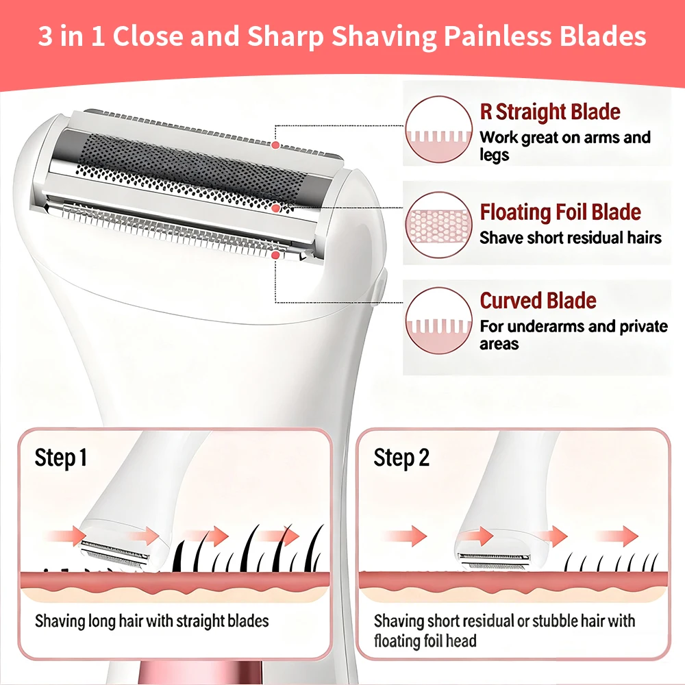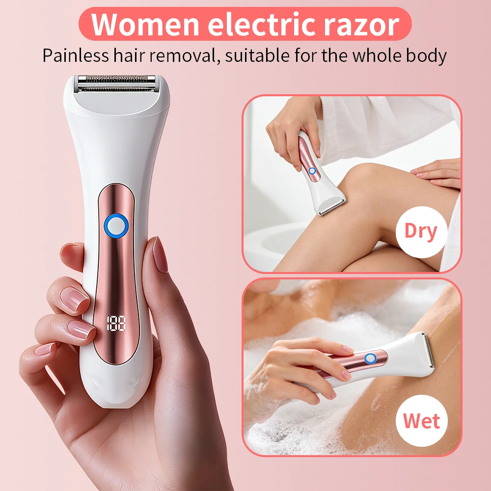 Afeitadora eléctrica impermeable para mujer, maquinilla de afeitar eléctrica portátil húmeda y seca, con cabezal de tres hojas para depilación de cuerpo completo
