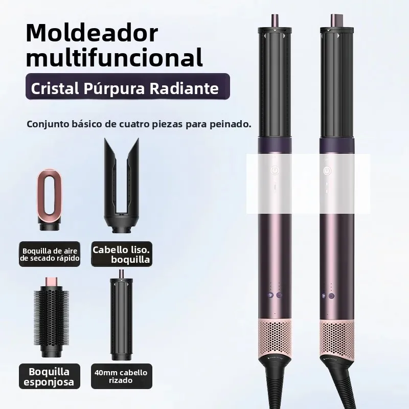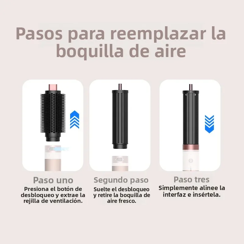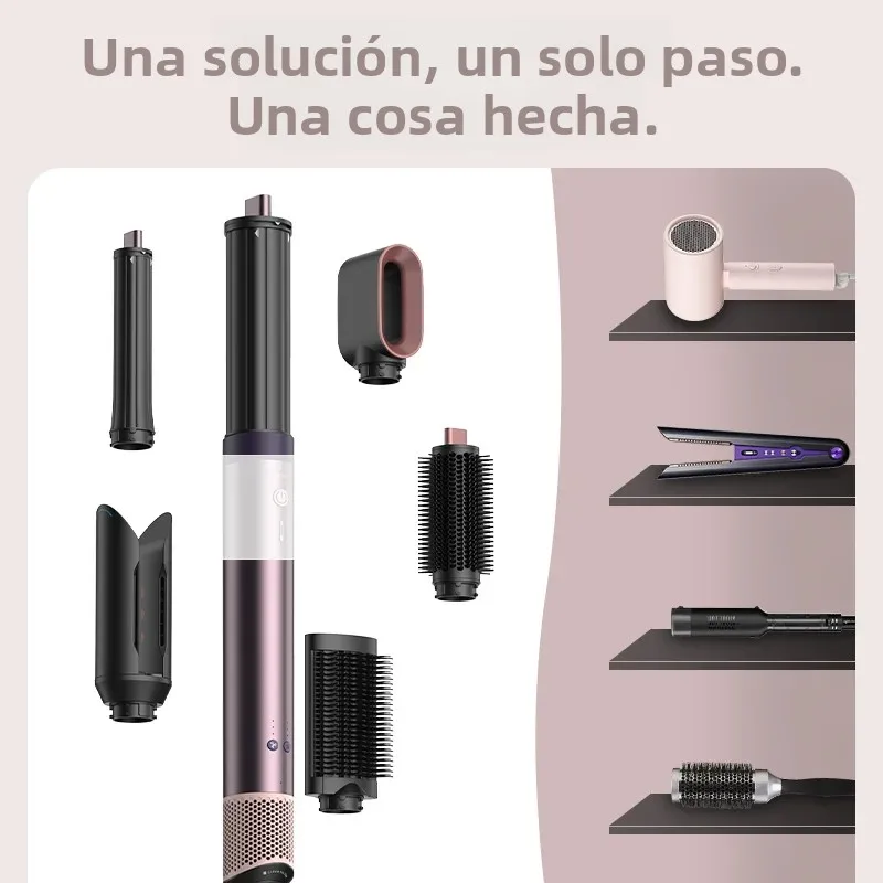 Enchufe de la UE 6-en-1 Multi Hair Styler Rizador de cabello Cepillo de aire caliente Curling Barril Secador de cabello Peinador de cabello rizado profesional 220V 1700W Aire caliente/frío Peinado automático Cepillo de
