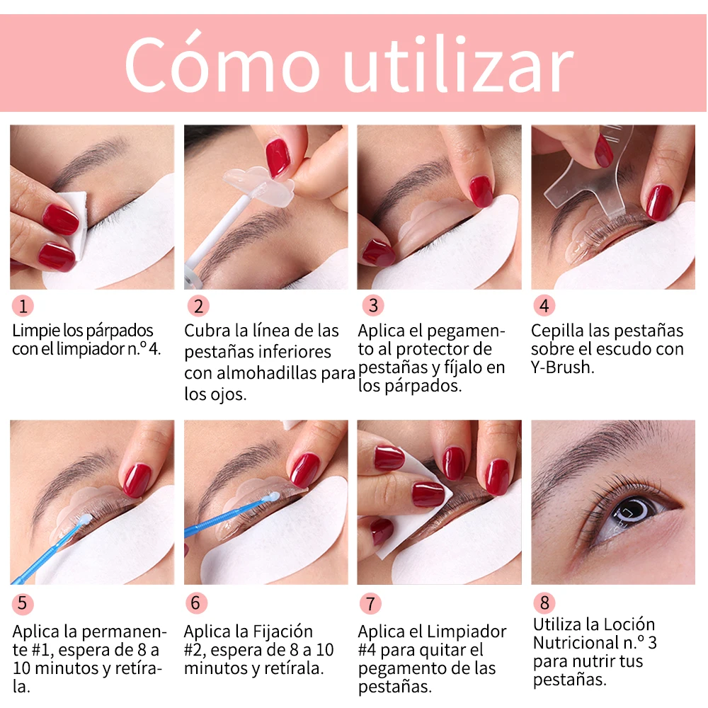 Aplicación fácil paso a paso: sigue instrucciones en empaque para rizar y potenciar pestañas de forma permanente.