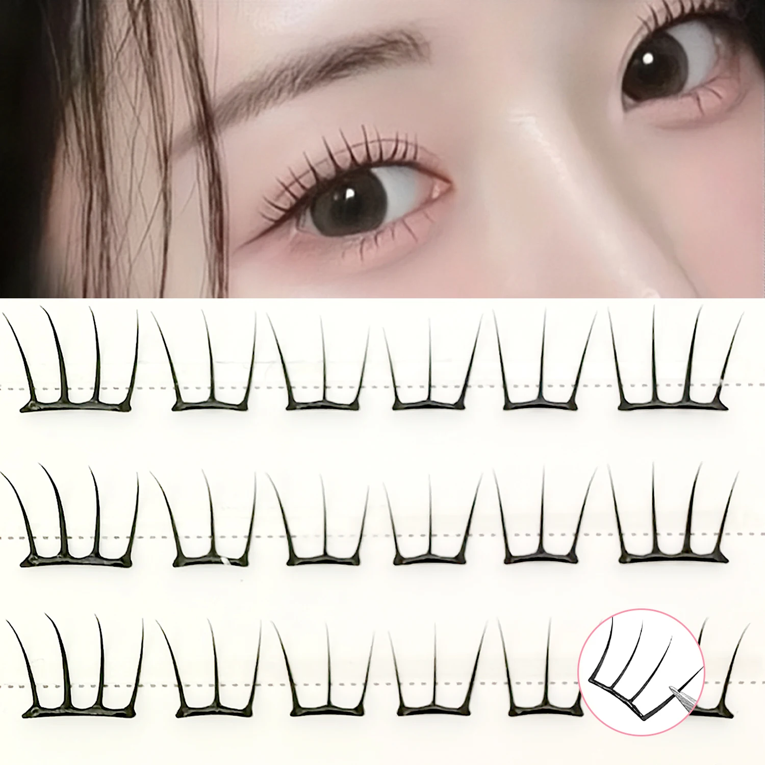Pestañas postizas autoadhesivas con estilo coreano, diseño de cómic delgado y esponjoso inspirado en K-pop para uso diario