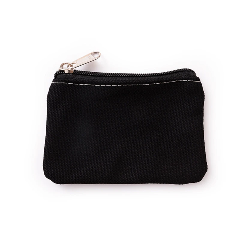 Bolsa de algodón de lona Lisa para hombre y mujer, monedero de mano con cremallera pura, monedero pequeño para llaves y monedas