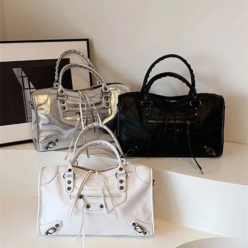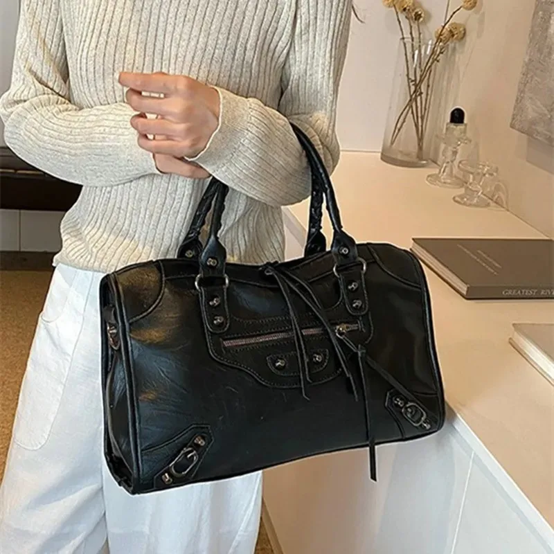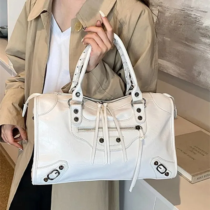 Bolso Tote de Cuero PU de Primera Calidad, Diseño de Lujo 2026, Gran Capacidad, Nuevo Bolso de Mano Casual con Remaches, Bolso Bandolera Moderno