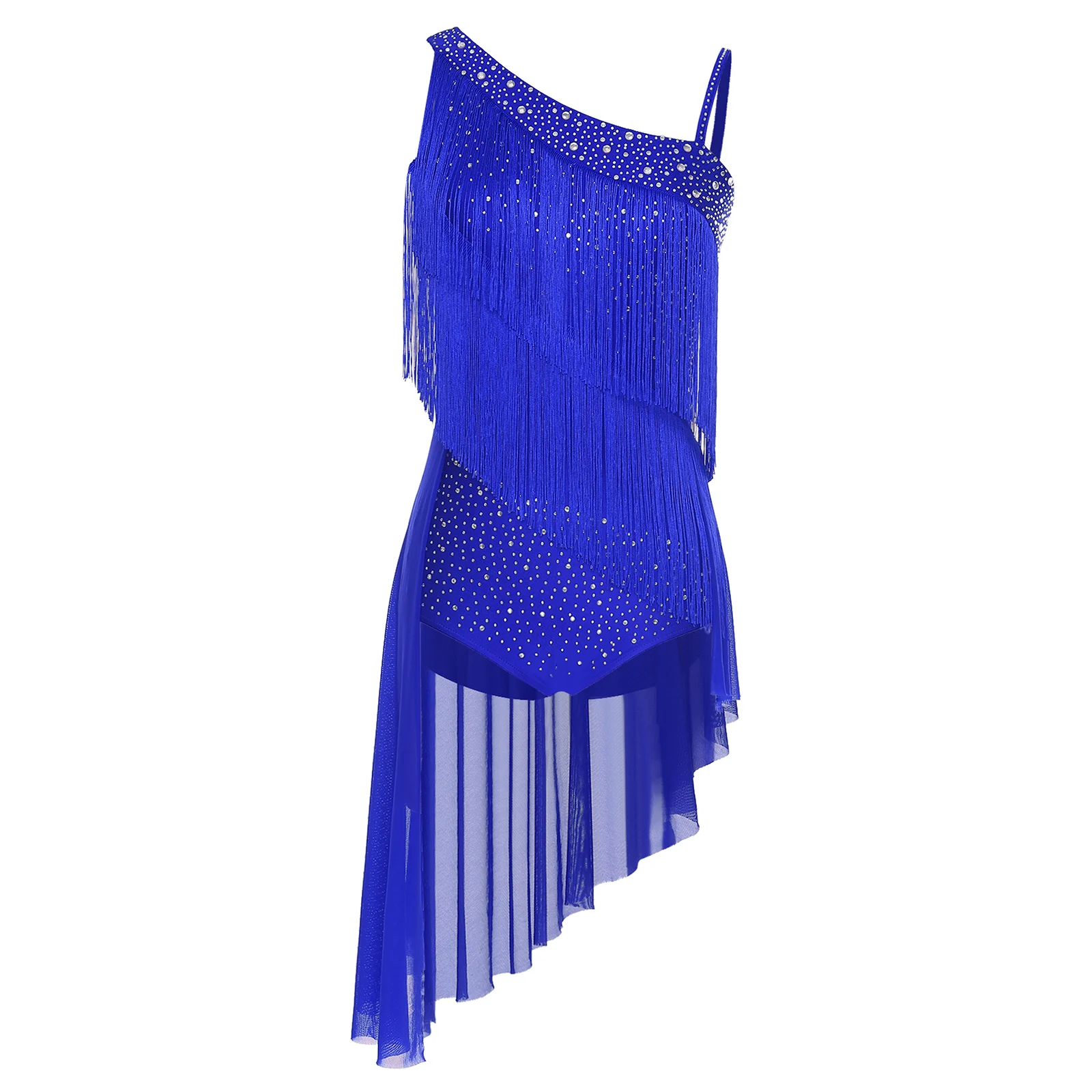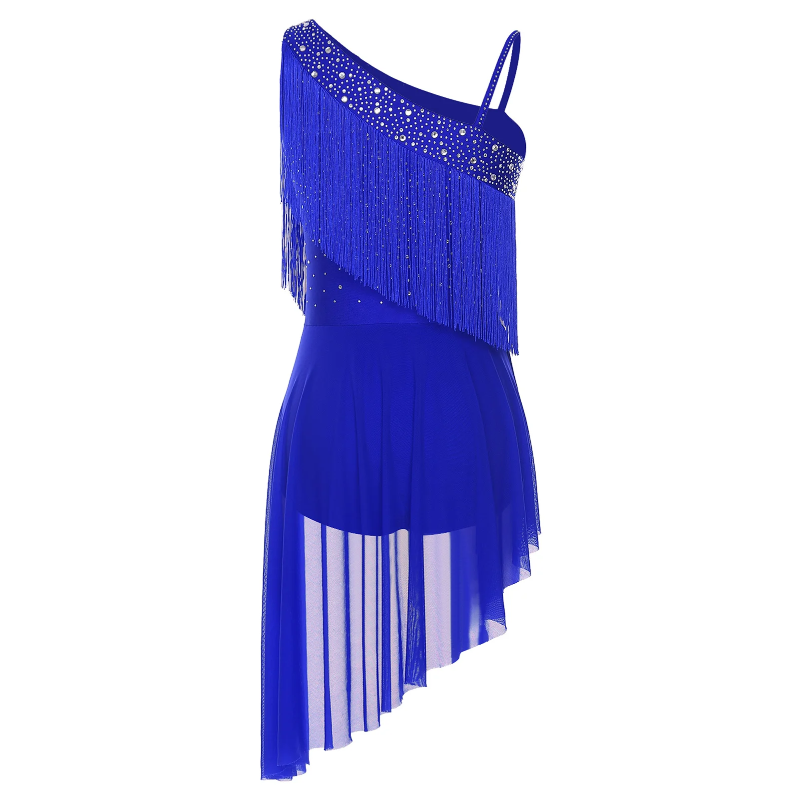 Traje de baile con borlas de Tango latino para mujer, traje de baile con purpurina y diamantes de imitación, gimnasia, patinaje artístico, vestido de leotardo de Ballet, Ropa de baile