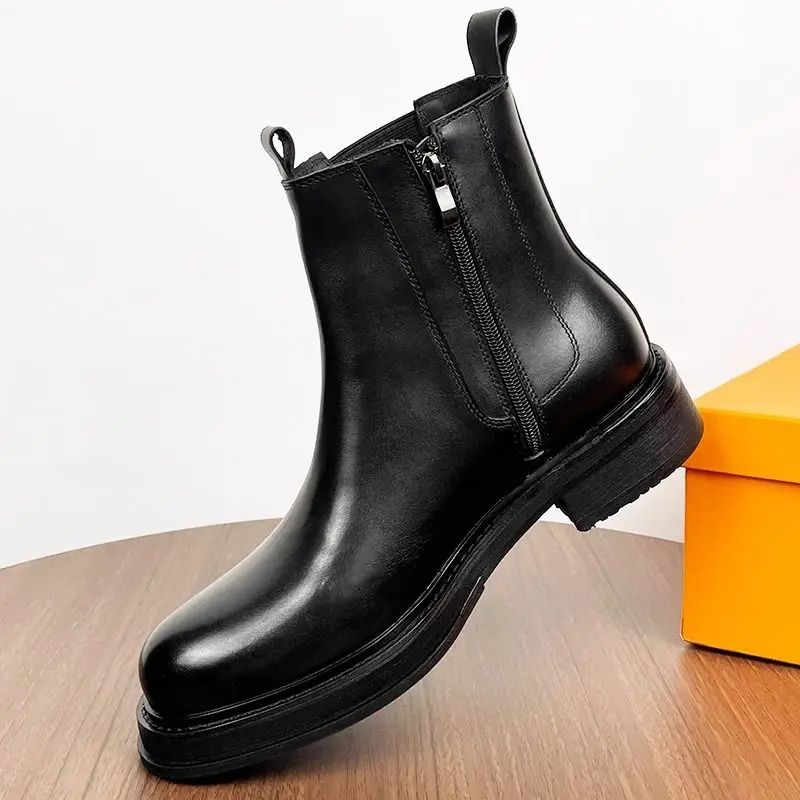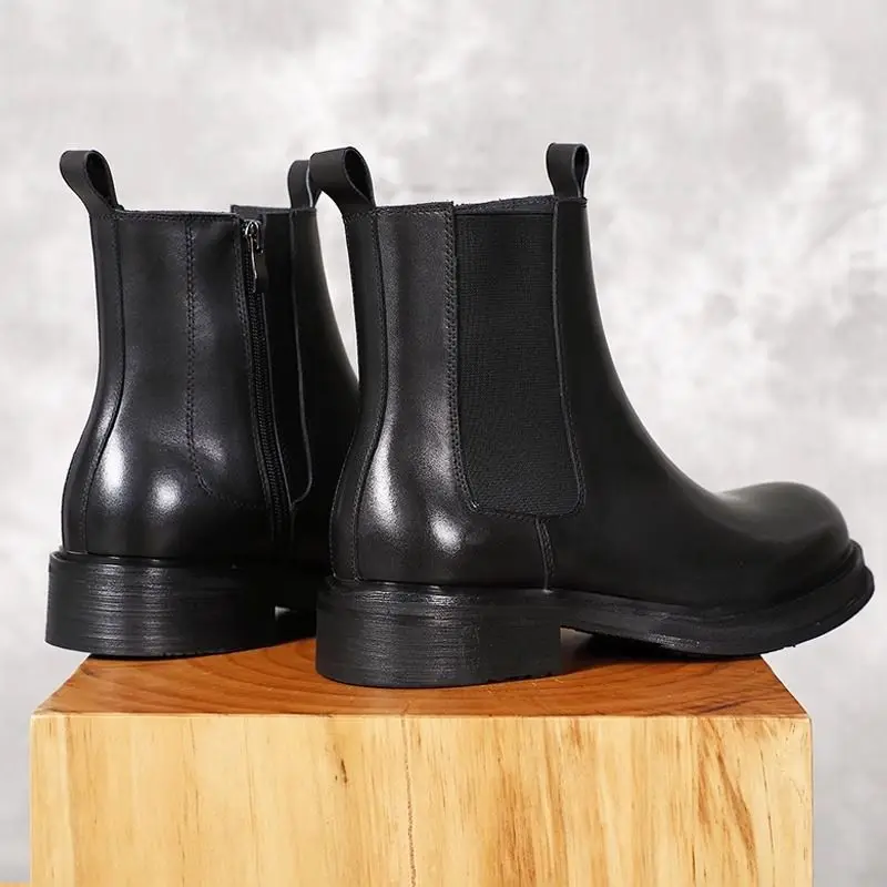 2025 Botas Chelsea cortas de cigarrillo de manga premium con locomotora de cabeza redonda y parte superior alta de marea británica para hombres