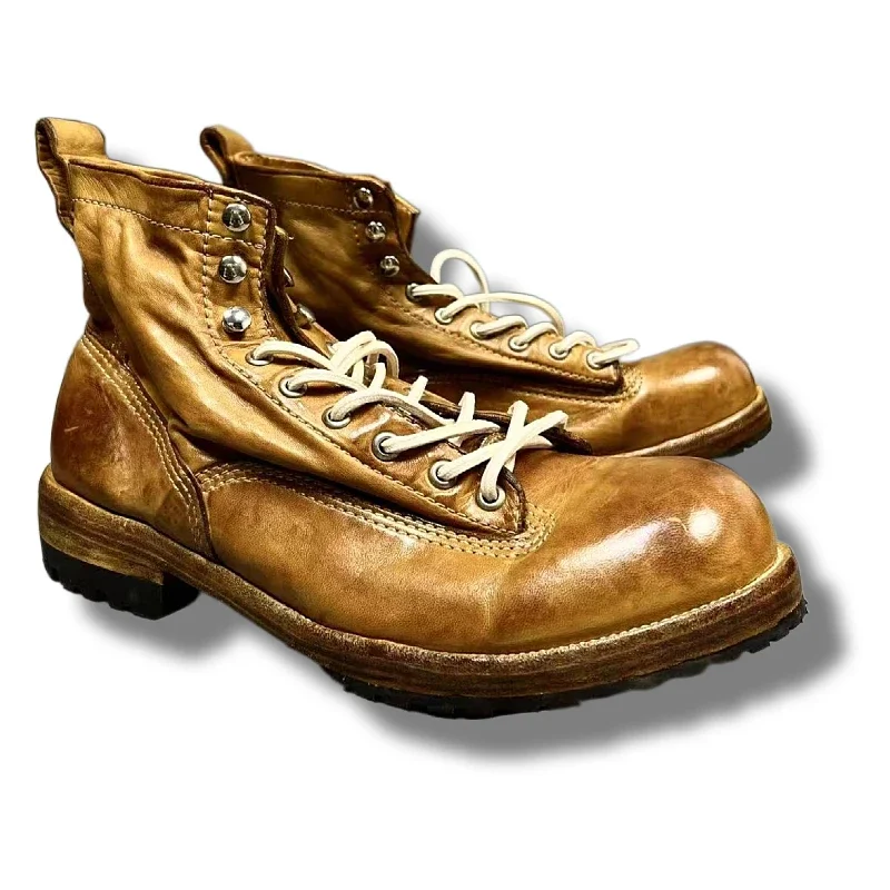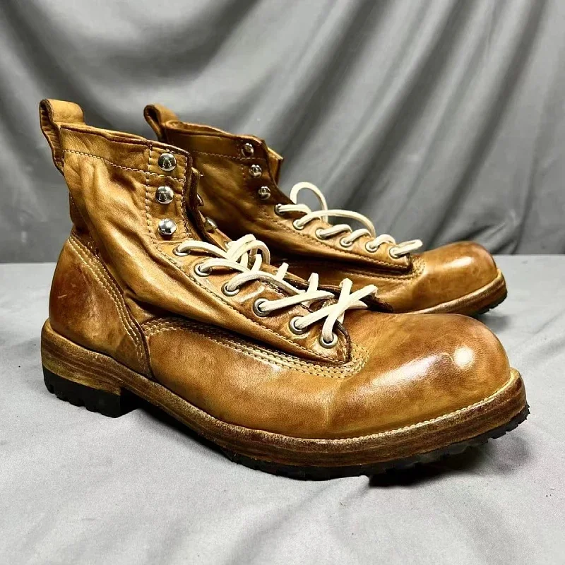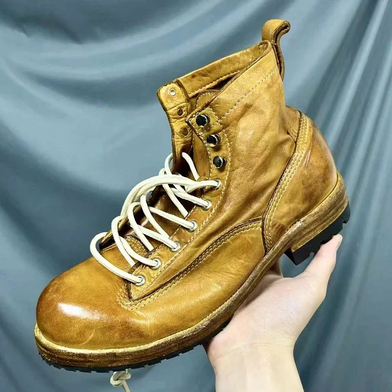 Botas de cuero cortas de tiro alto con suela gruesa de cuero Retro de caña alta lavada para hombre Goodyear-zapatos de cuero de caballo hechos a mano botas desgastadas