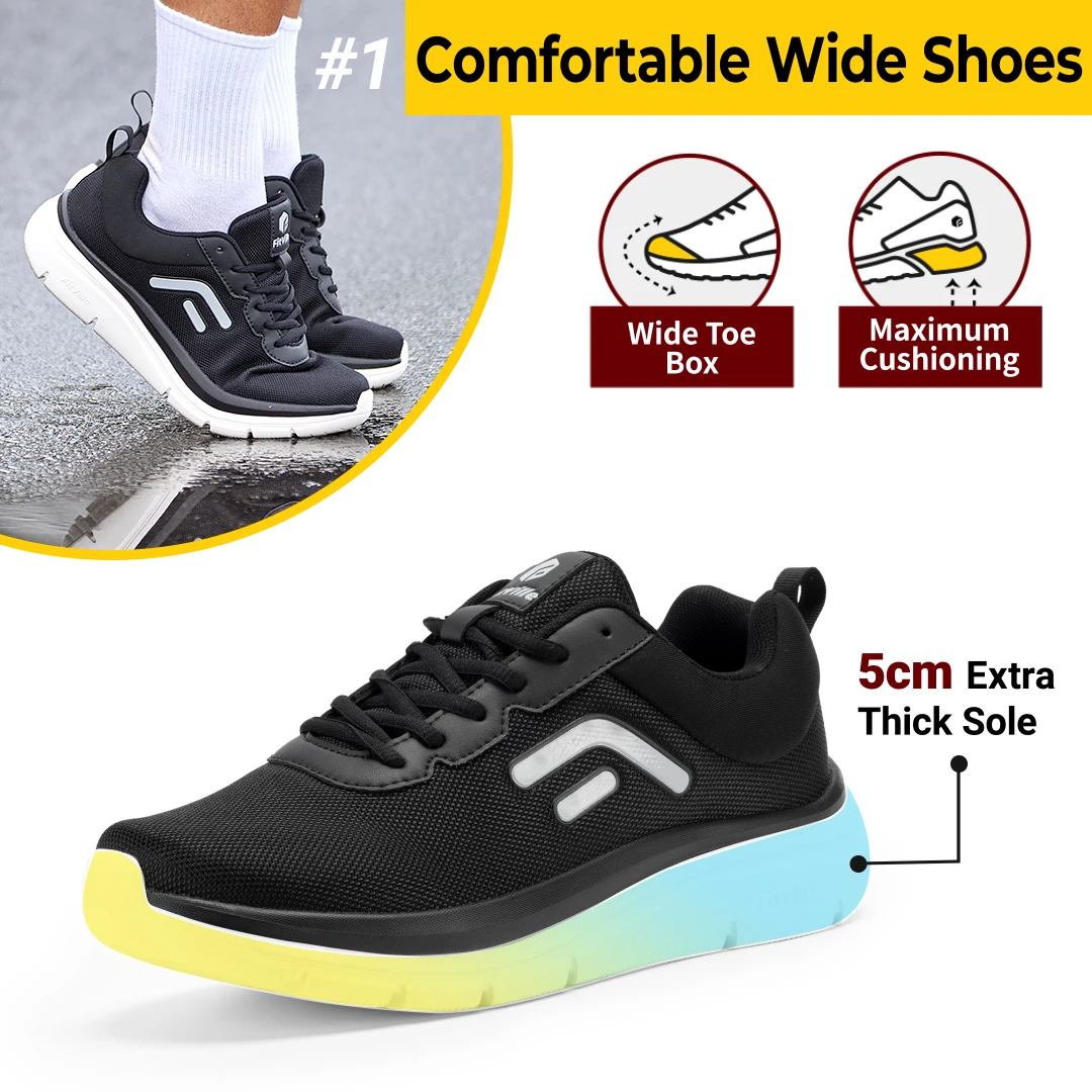 FitVille zapatos para caminar para hombres de ancho suela gruesa zapatillas ligeras transpirables zapatos para fascitis Plantar alivio del dolor