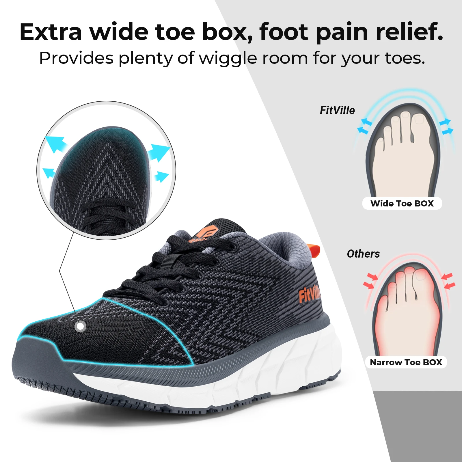 FitVille-zapatos para hombre con punta ancha, calzado para correr antideslizante, ancho Extra, acolchado, cómodas y ligeras, para pies gordos