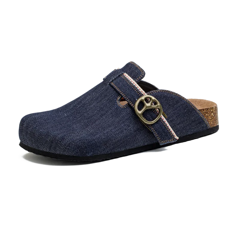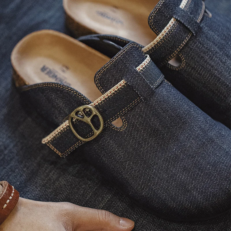 Maden Vintage Verano Denim Mules Zapatos sin cordones de corcho transpirables para hombres Sandalias ajustables casuales para exteriores y zapatos azules para el hogar