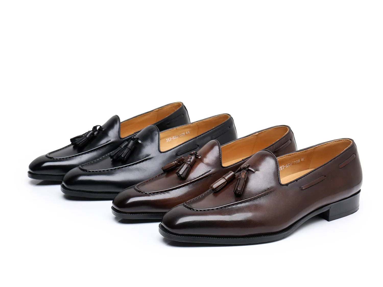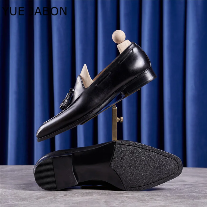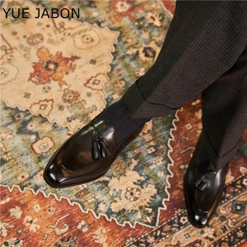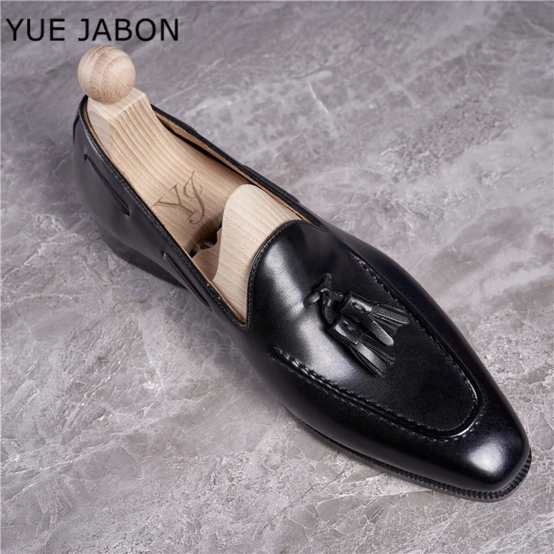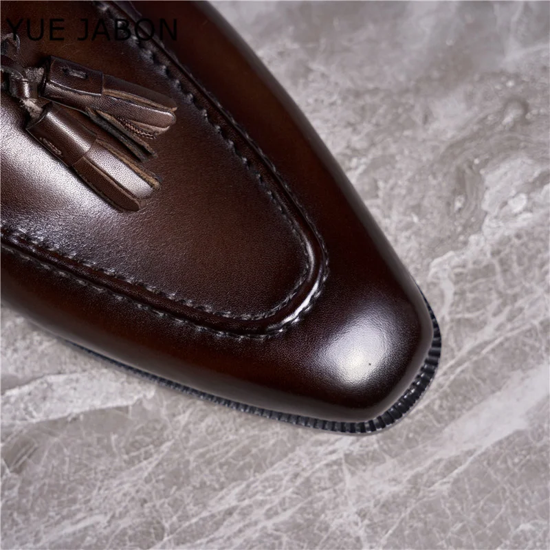 Mocasines clásicos con borlas de cuero genuino para hombre, zapatos informales sin cordones hechos a mano, cómodos para oficina, boda, vestidor, uso diario