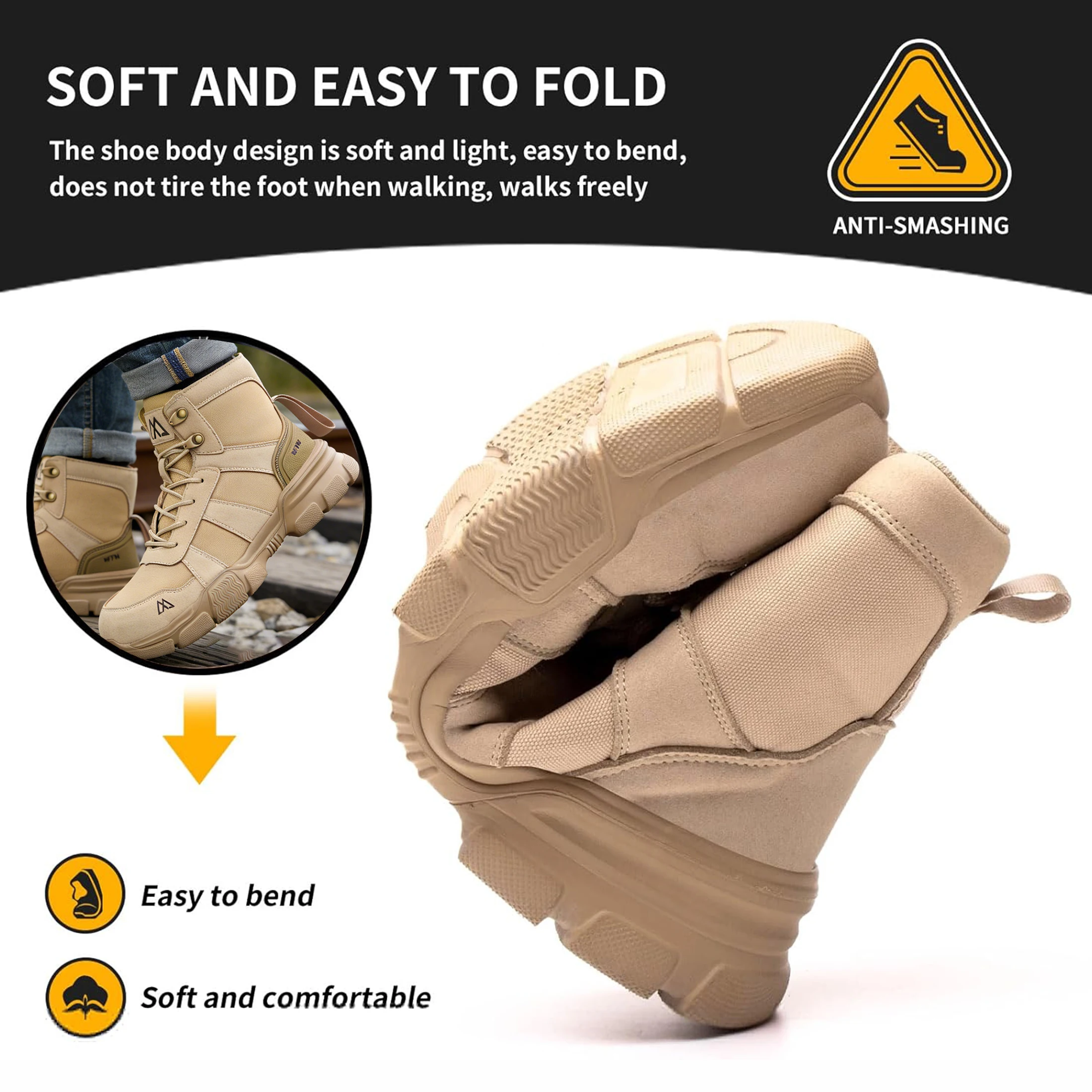 Protección ligera Zapatos de seguridad Hombres Pie de acero Zapatos de trabajo anti-destrucción Botas de seguridad del hombre indestructibles Botas de seguridad al aire libre Zapatos de seguridad protectores Botas de t