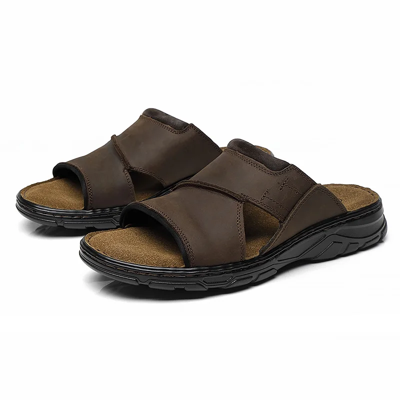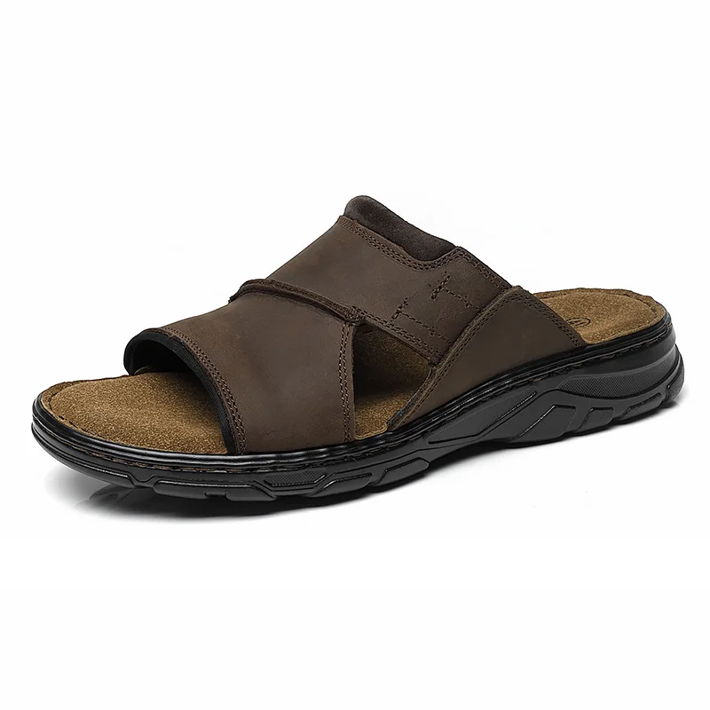 Sandalias deportivas de piel de vaca de primera capa para hombre, sandalias antideslizantes para exteriores con punta abierta, zapatos casuales para hombre, zapatos de playa de moda para actividades al aire libre, Li