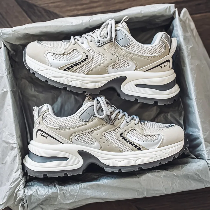 Zapatillas deportivas casuales de malla transpirable de suela gruesa de caña baja para hombre, tendencia de moda, versátiles y cómodas, estilo chunky, Primavera 2026
