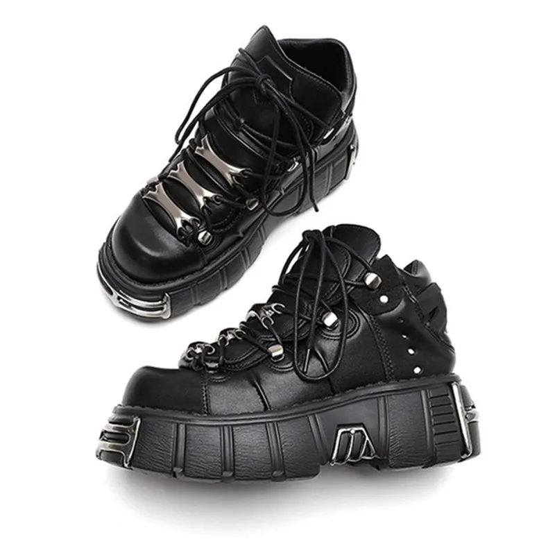 Zapatos de Plataforma Estilo Punk para Hombre, Botas con Cordones y Punta Redonda, Suela Gruesa, Zapatos Casuales con Decoración Metálica Gótica para Mujer, Novedad 2026