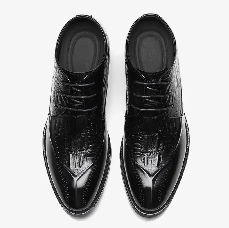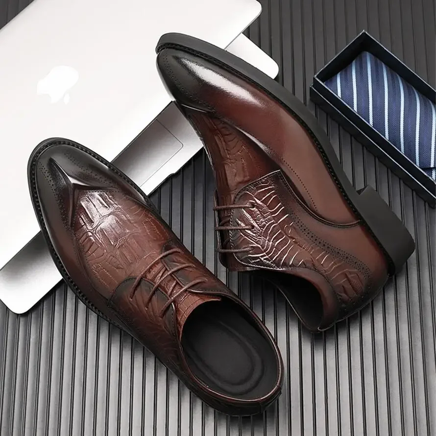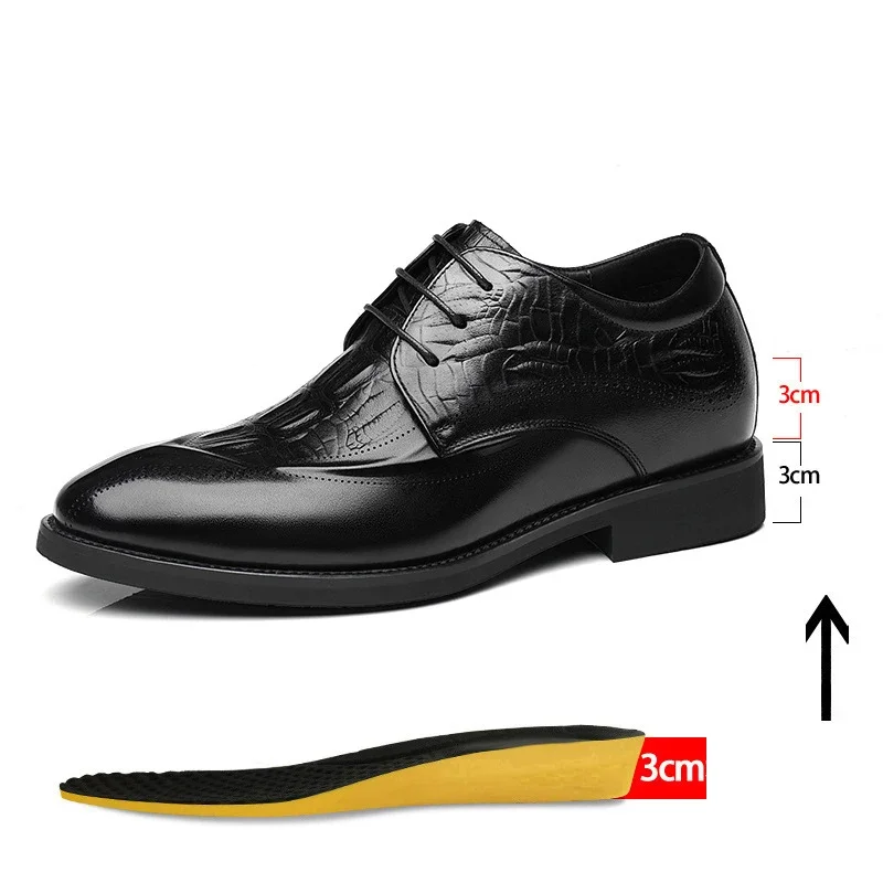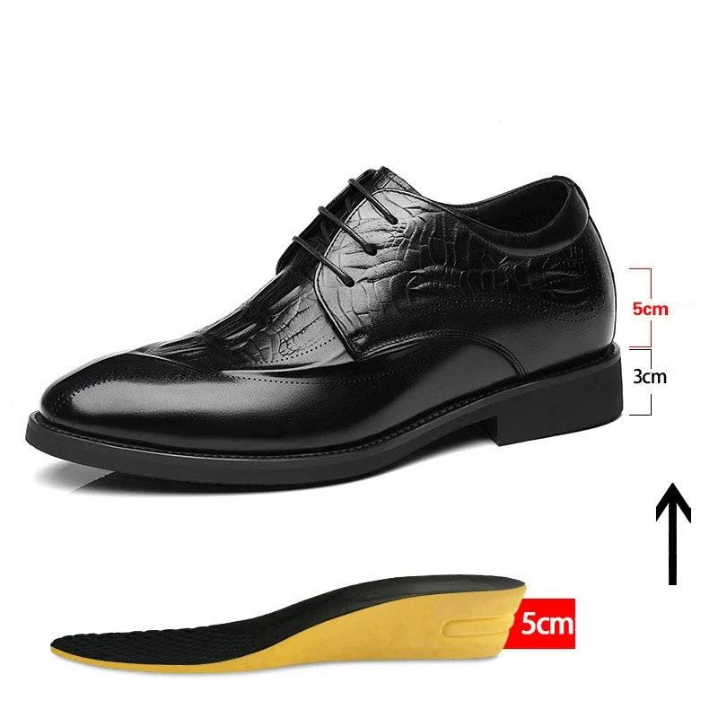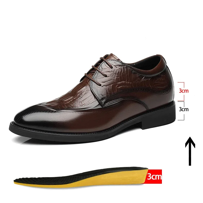 Zapatos de vestir de cuero genuino para hombre, zapatos con tacones ocultos, zapatos con elevador de 8CM y 6CM de altura aumentada, moda marrón para boda
