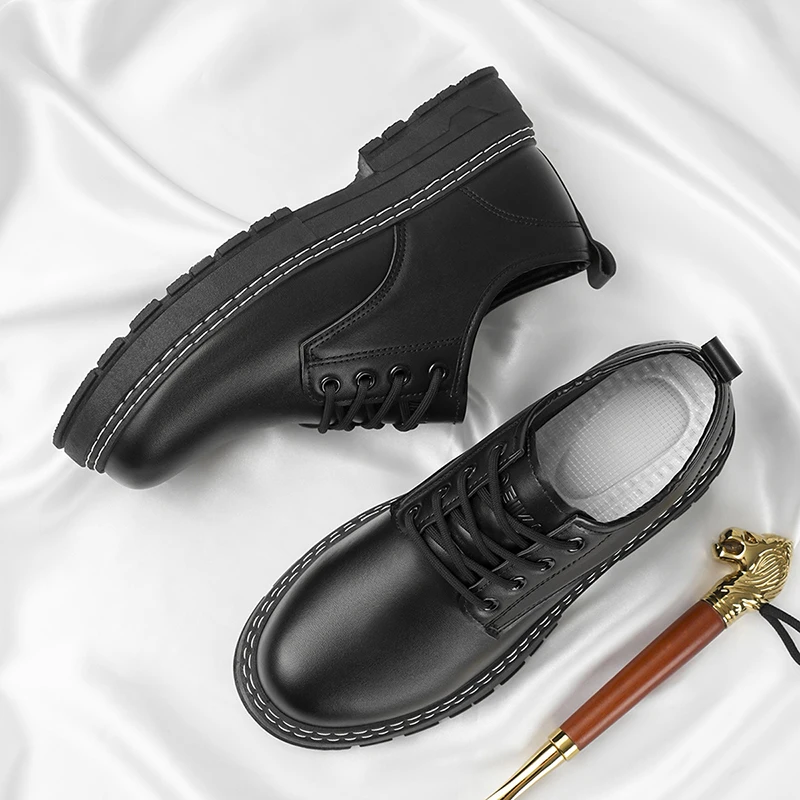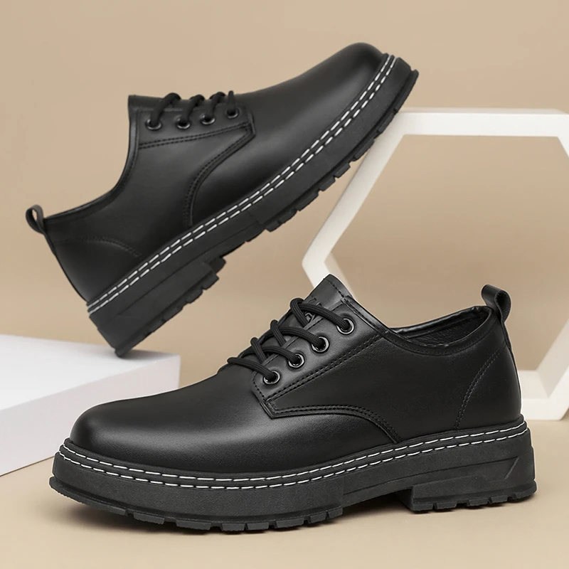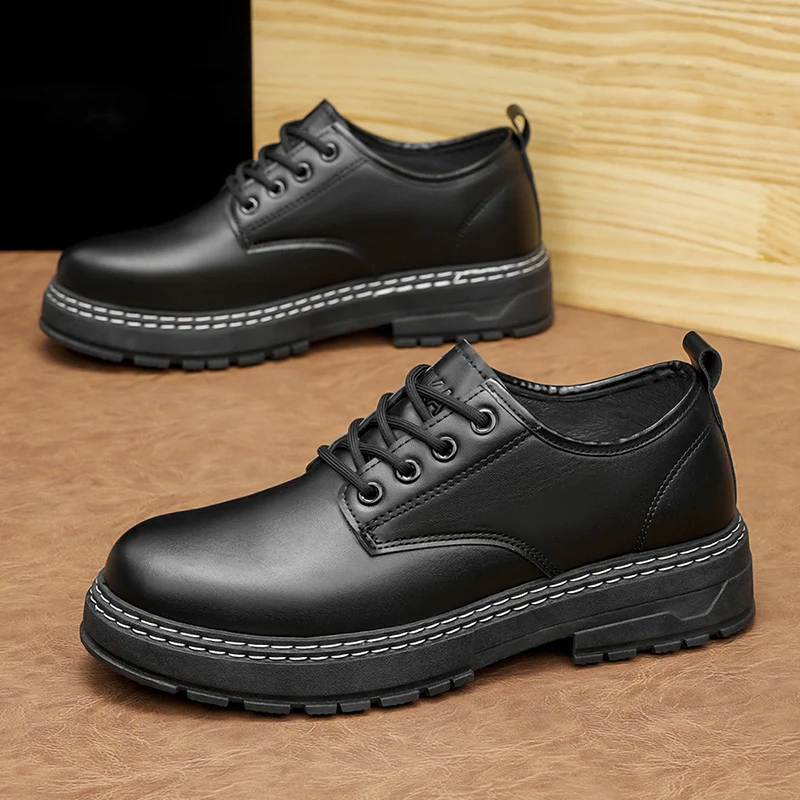 Zapatos Oxford de Cuero para Hombre, Estilo Casual, con Cordones, Antideslizantes, con Plataforma, para Oficina