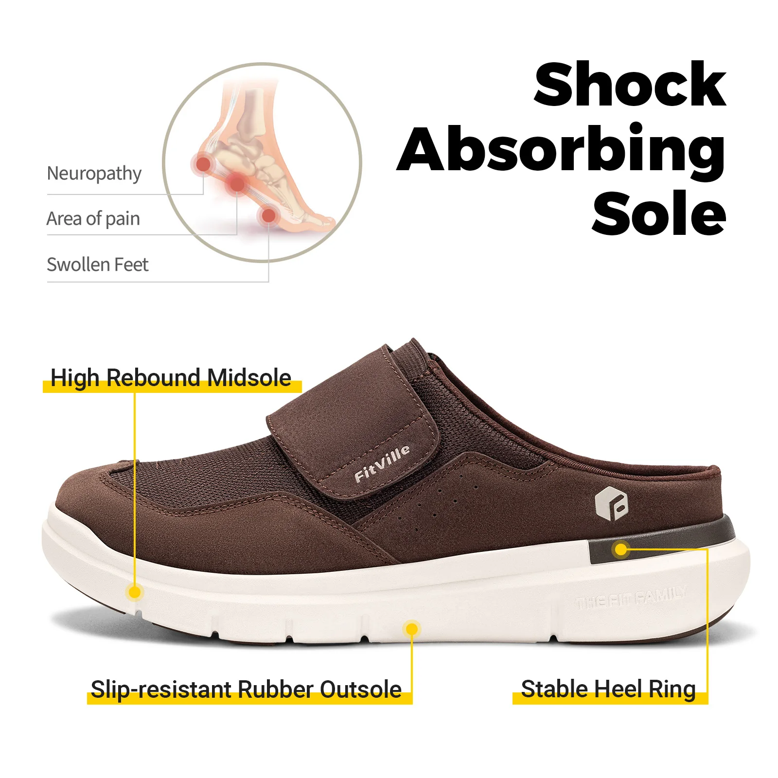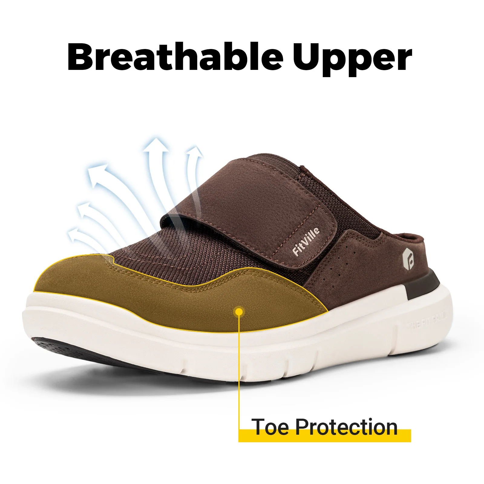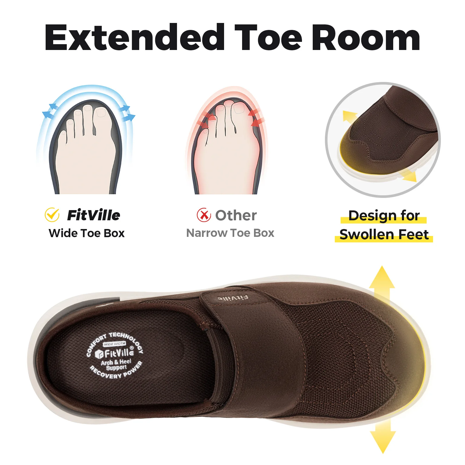 Zapatos para diabéticos Fittington para hombre, zapatillas para diabéticos de ancho, zapatillas sin cordones para pies hinchados, zapatos sin cordones con soporte para arco