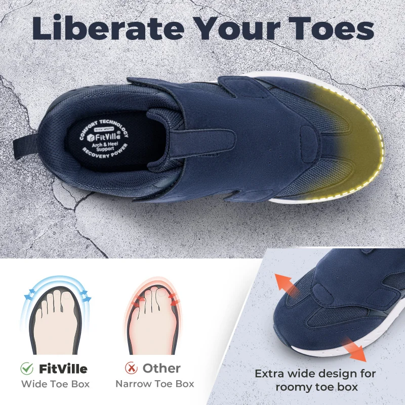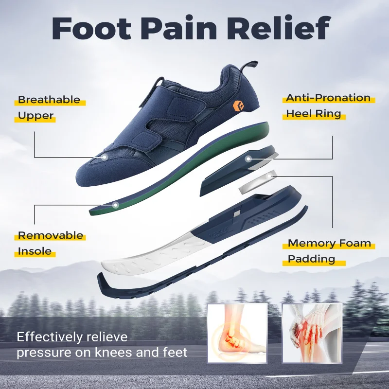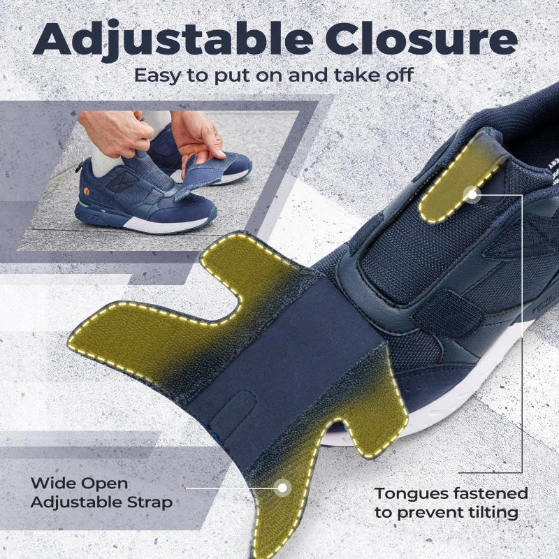 Zapatos para diabéticos para hombre, zapatillas anchas 2E sin cordones para pies hinchados, calzado deportivo para caminar con soporte para arco para aliviar el dolor en el pie