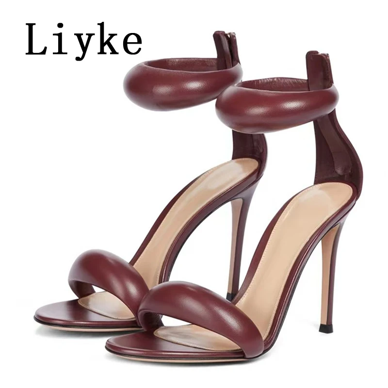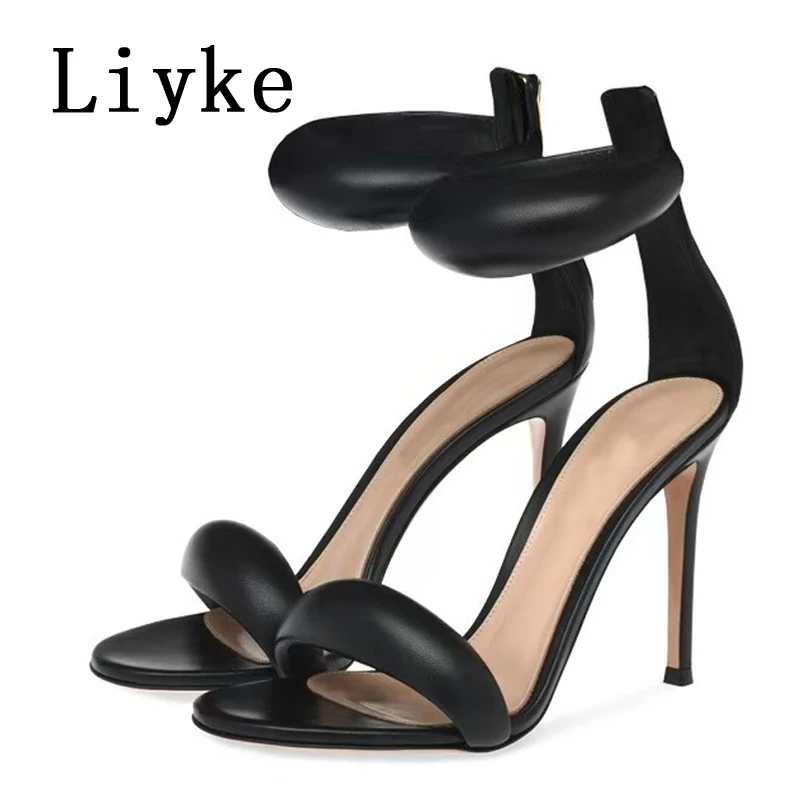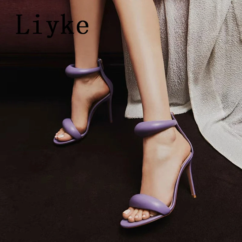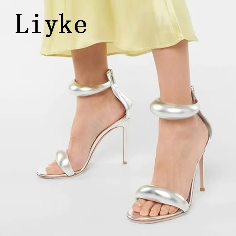 Liyke 2026 oro nuevo plata punta abierta tacones altos finos Zapatos para banquete de boda Sexy Zip tobillo cubierta correa sandalia Mujer Zapatos Mujer