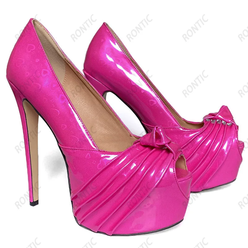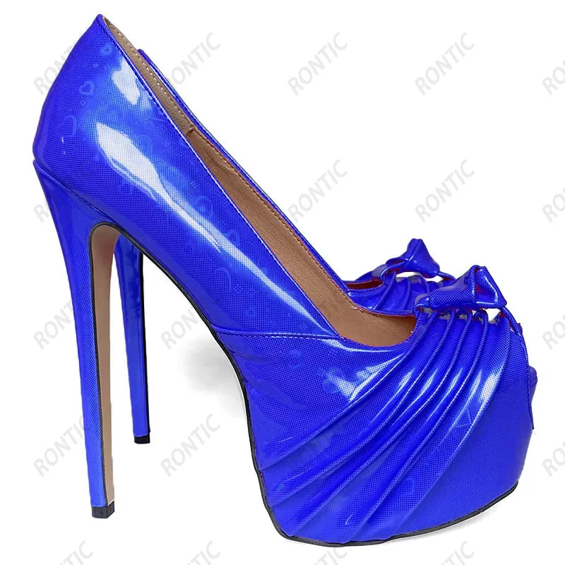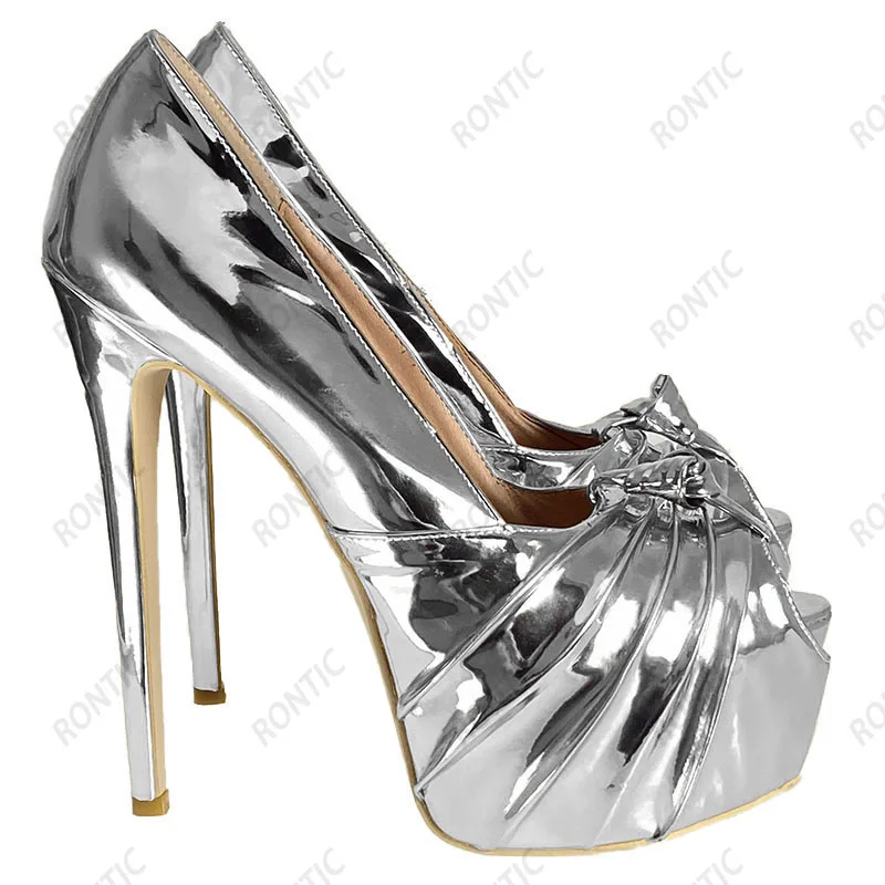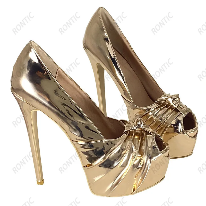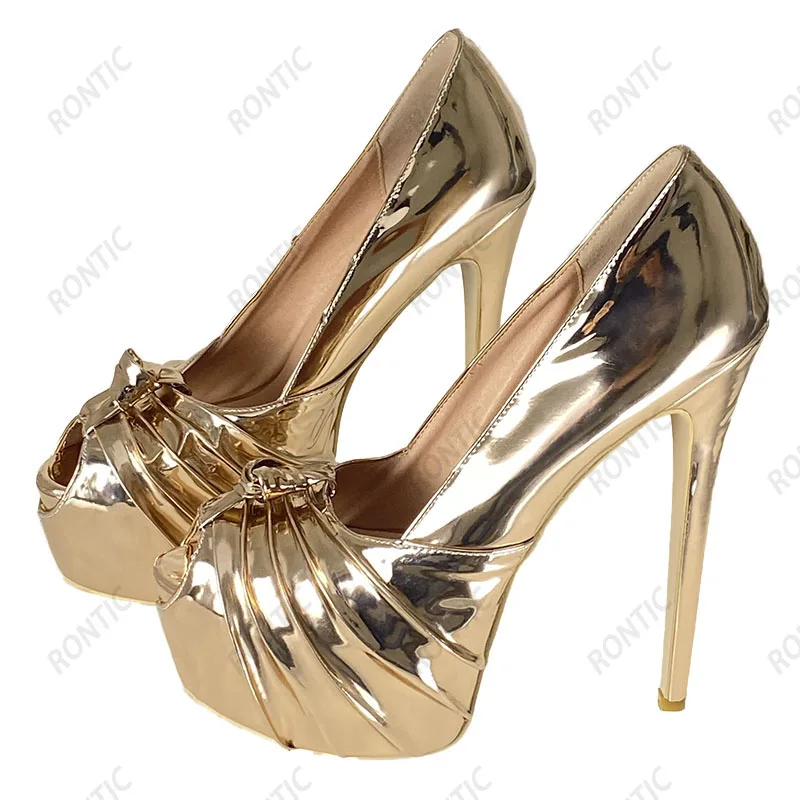 Rontic-zapatos de plataforma hechos a mano para mujer, tacones de aguja Ultra altos de charol, Punta abierta, hermosos zapatos de fiesta de oro para Cosplay, talla de EE. UU. 5-20