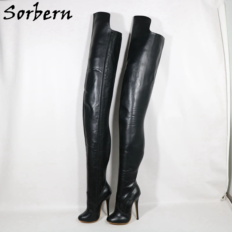 Sorbern Retro Burlesque tacón alto botas súper largas mujeres 85Cm entrepierna trasera muslo alto 95cm punta redonda delantera zapatos de tacones de aguja personalizados