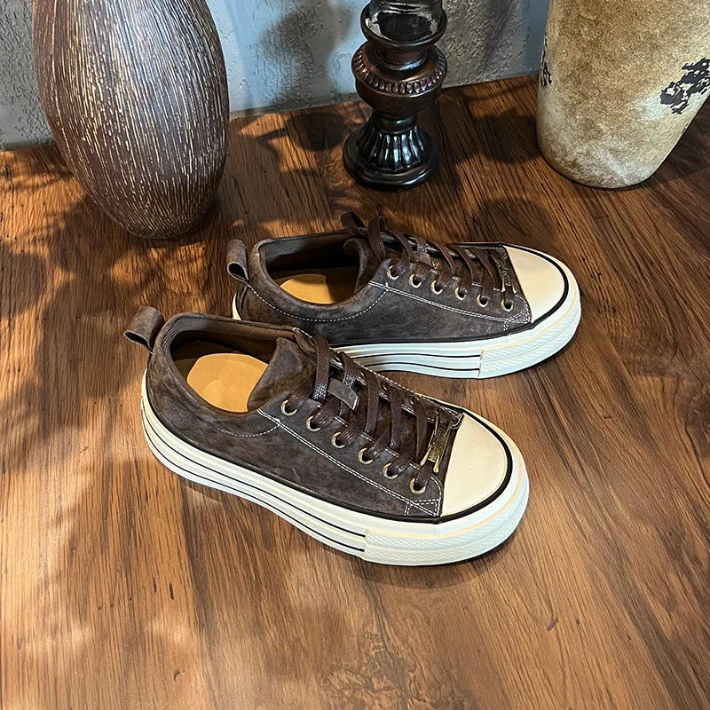 Zapatillas de deporte blancas de cuero genuino para mujer, zapatos de plataforma Retro de otoño, suela gruesa cómoda, informal con aumento de altura