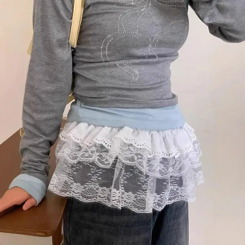 Falda Irregular de encaje a la moda, cortina de flores blancas, falda de medio cuerpo de malla de encaje, pantalones vaqueros de verano para mujer, dobladillo decorativo