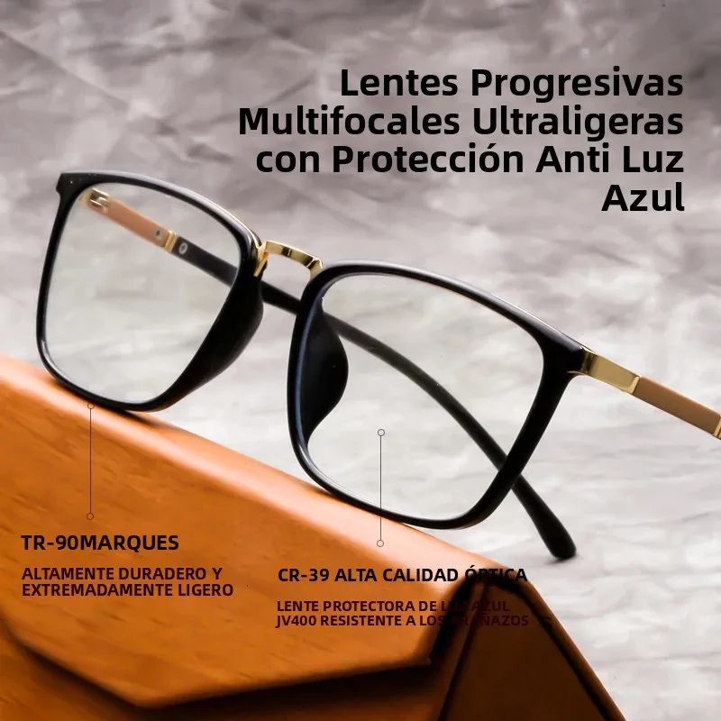 Gafas de Lectura Progresivas Multifocales para Hombre, Gafas Anti Luz Azul y Anti Fatiga para Presbicia, Gafas Cuadradas para Computadora