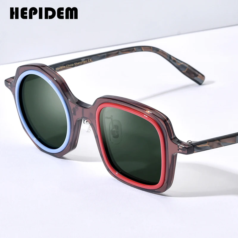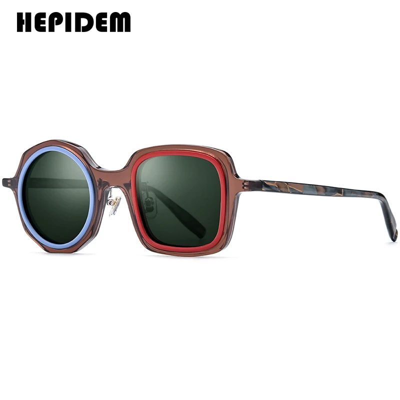 Gafas de sol polarizadas de acetato HEPIDEM para hombre, gafas de sol redondas de estilo japonés de alta gama, de marca de lujo, para mujer, y2k 9356