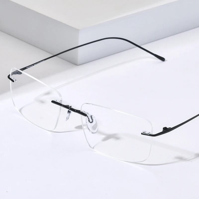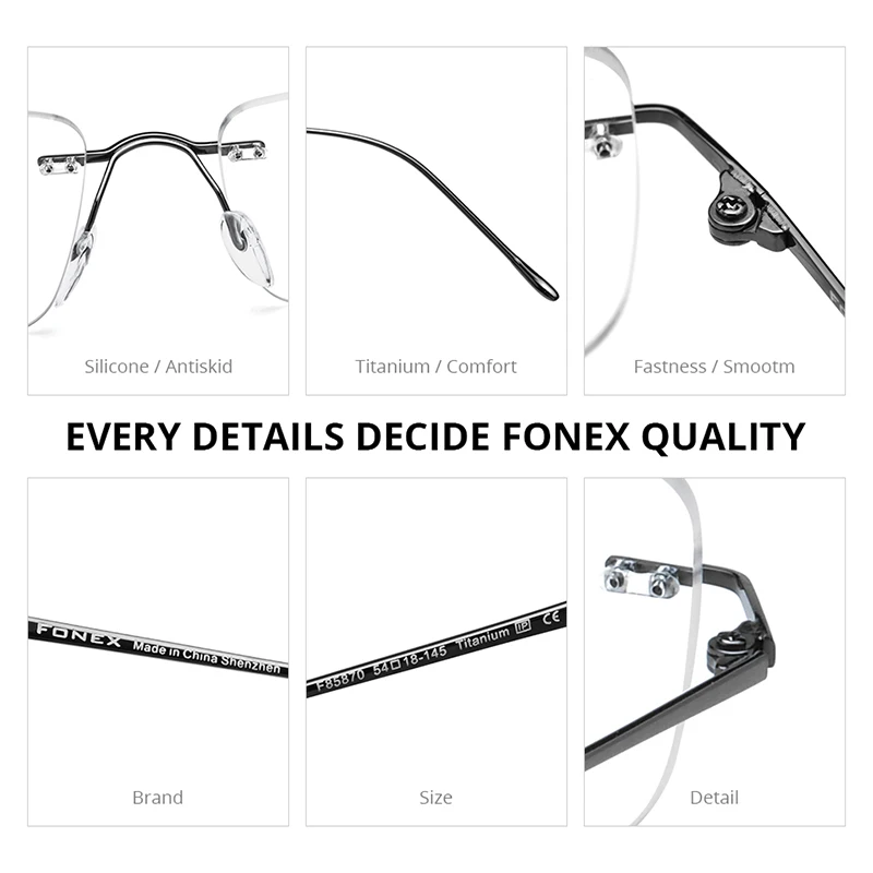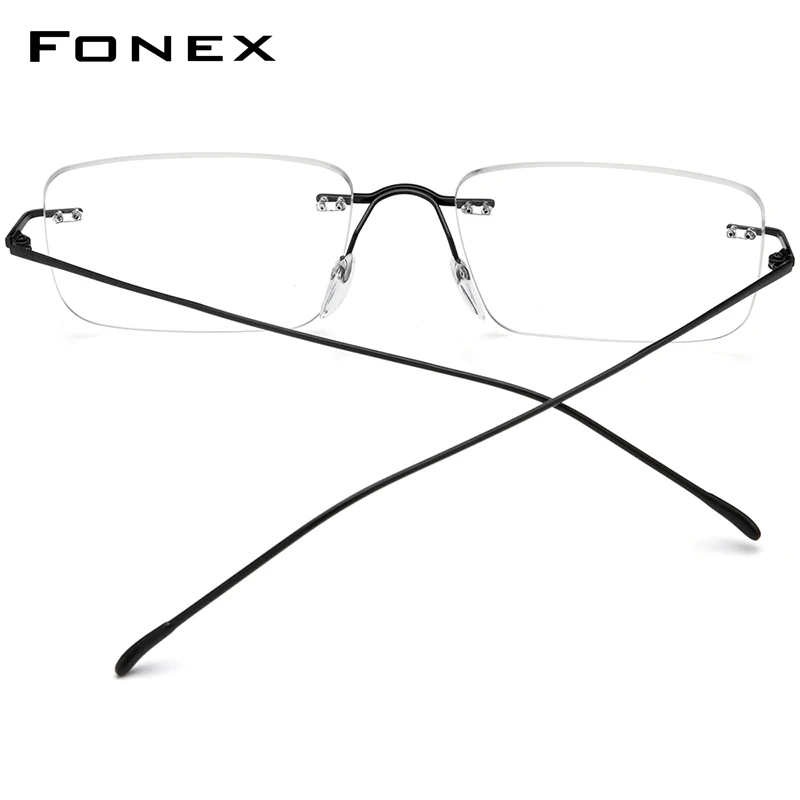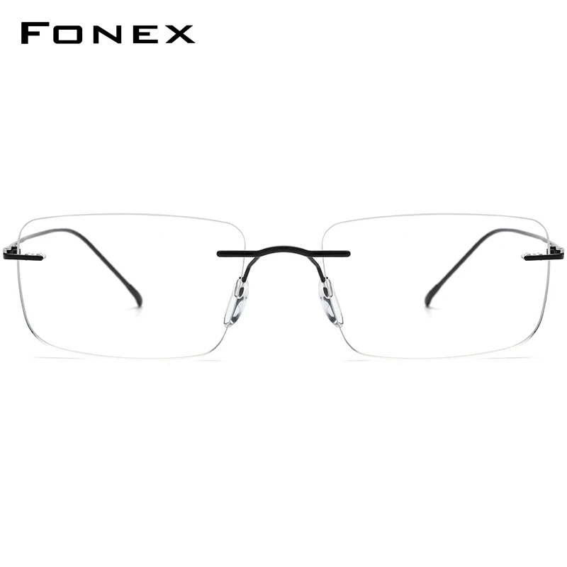 Montura de gafas de titanio FONEX para hombre, gafas cuadradas sin montura de diseño de marca para mujer, gafas japonesas ultraligeras sin marco 85870