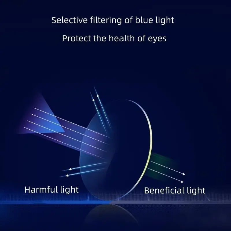 CR-39 con revestimiento antirreflectante anti-luz azul.