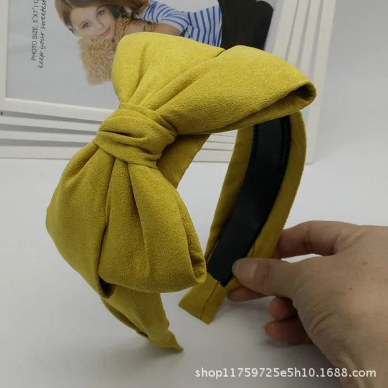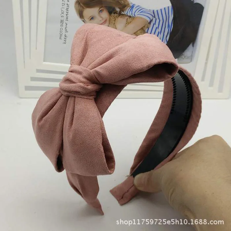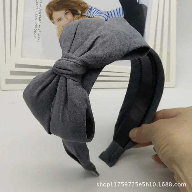Horquilla de presión de tela antideslizante, diadema dentada de piel de ciervo, lazo de ala ancha de gran tamaño, terciopelo que combina con todo, Color sólido
