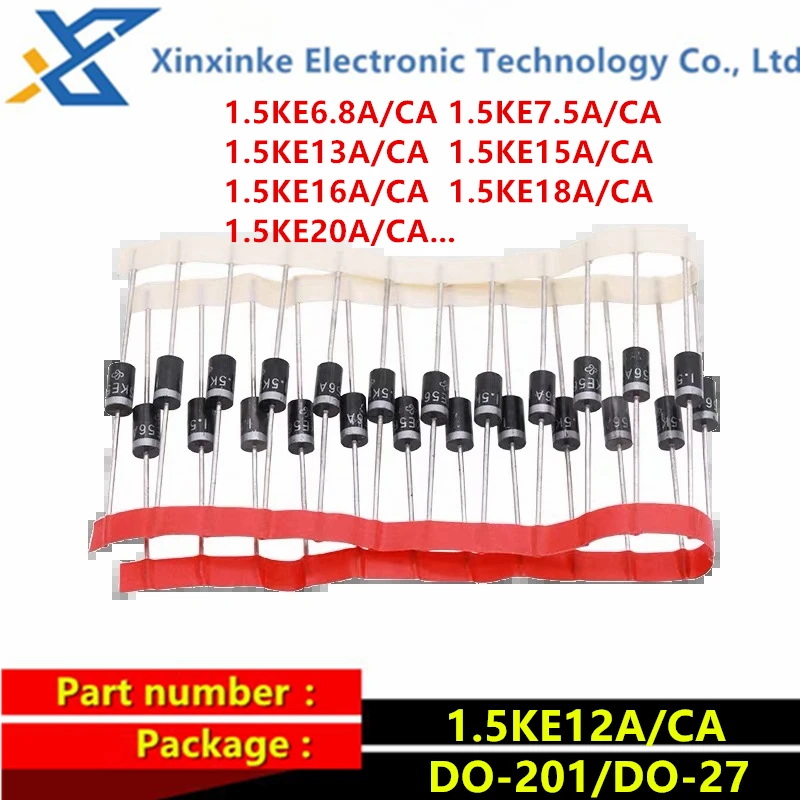100 Uds TVS tubo diodo transitorio 1.5KE6.8A CA 1.5KE7.5CA 8.2CA 1.5KE10A 9,1 V 11V 1.5KE13A 1.5KE15CA 16V 18V 20V 1.5KE20A 1.5KE18A