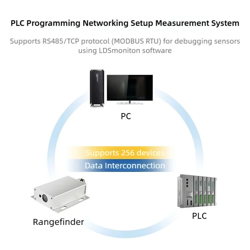 Sensor de distancia láser Módulo industrial de desplazamiento de alta precisión Puerto serie TTL/485 Cantidad de interruptor de cantidad analógica