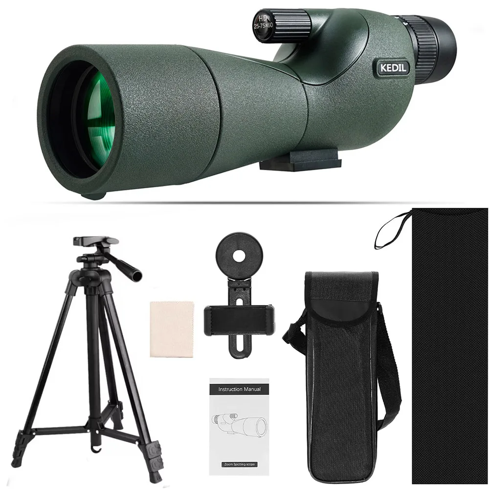 Telescopio Terrestre 25-75X60 para Tiro al Blanco, Caza, Observación de Aves, Zoom Profesional, Potente, Largo Alcance, Monocular, BAK4