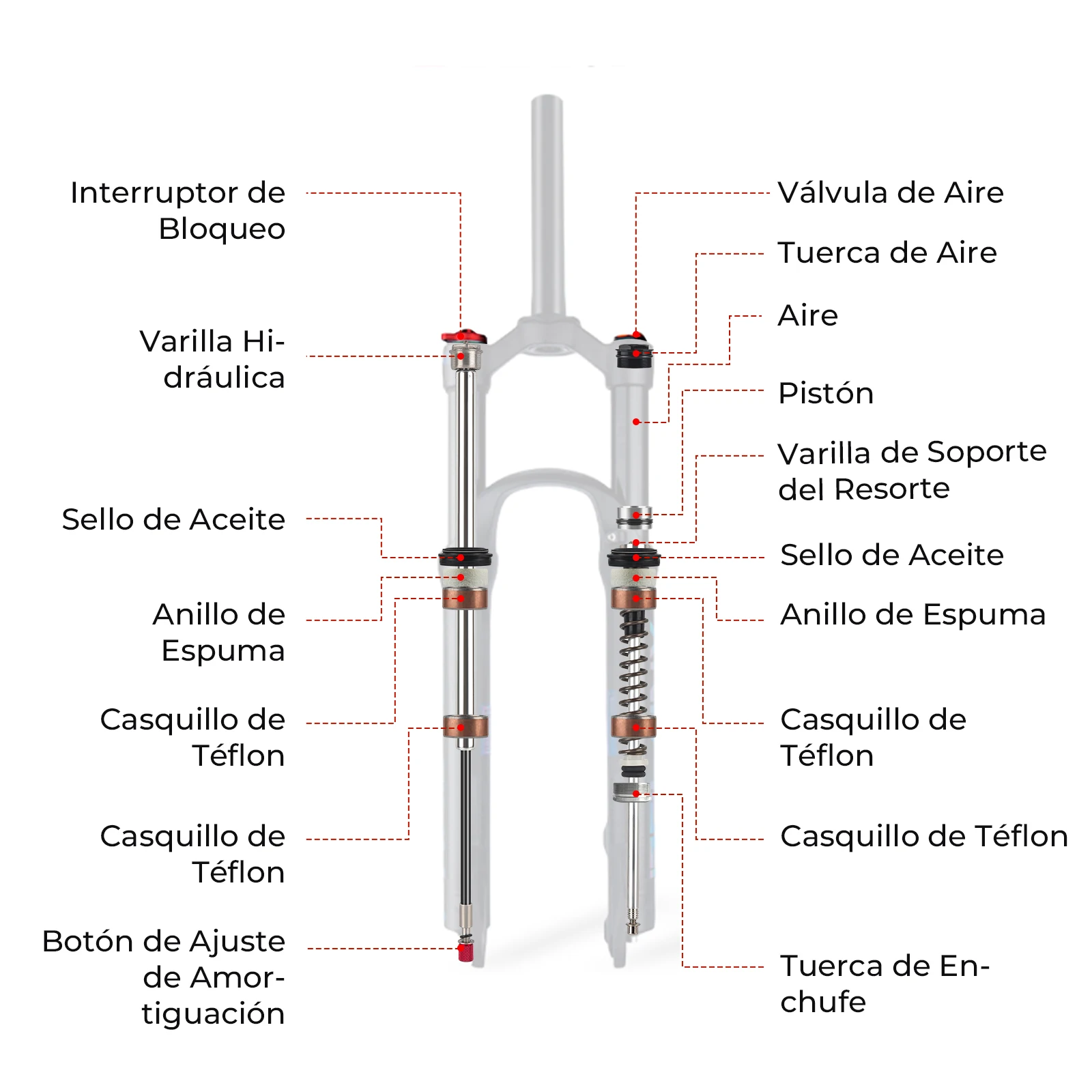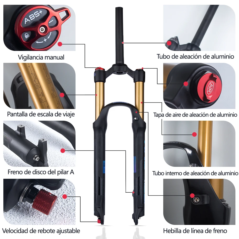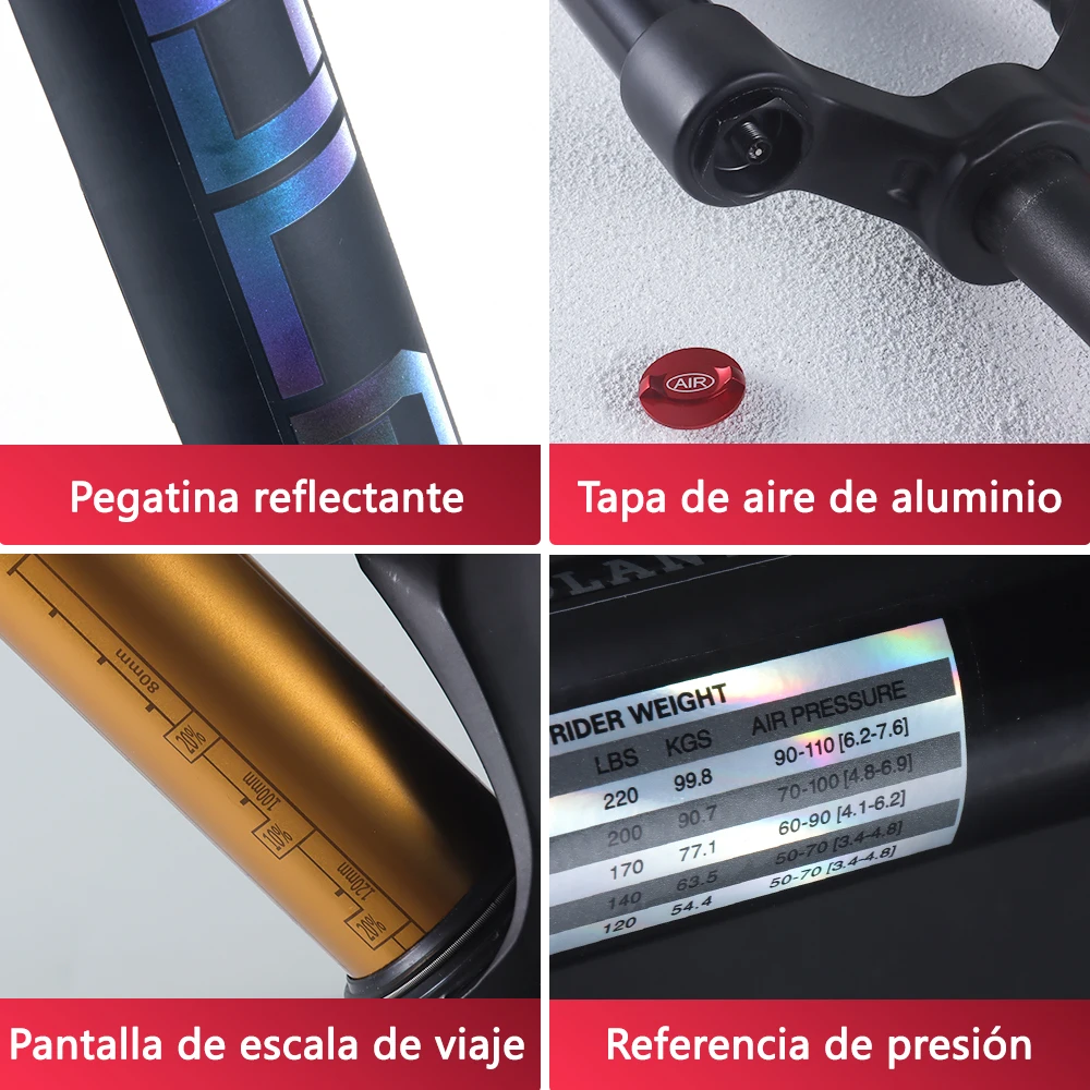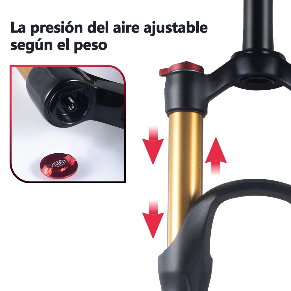 BOLANY R29 Horquilla de Bicicleta con Ajuste de Rebote Suspensión Delantera de Aire MTB 26/27.5/29 Pulgadas Recorrido de 120 mm Horquilla de 9x100mm Liberación Rápida Accesorios para Bicicletas Horquilla 29er