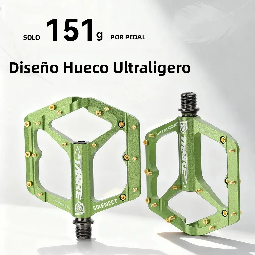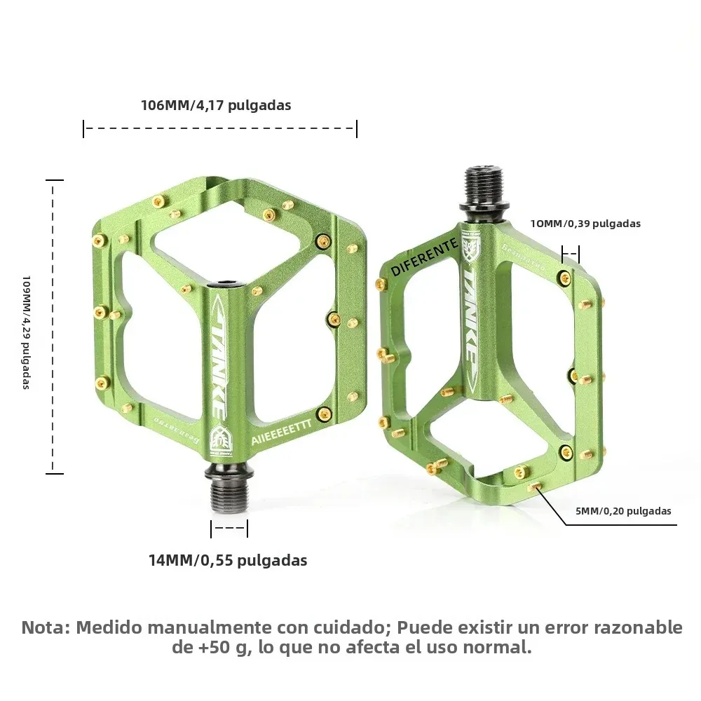 Pedales TANKE MTB de aleación de aluminio ligera, antideslizantes (10 pines antideslizantes/lateral) con grasa y rodamientos, pedal de bicicleta TP-53