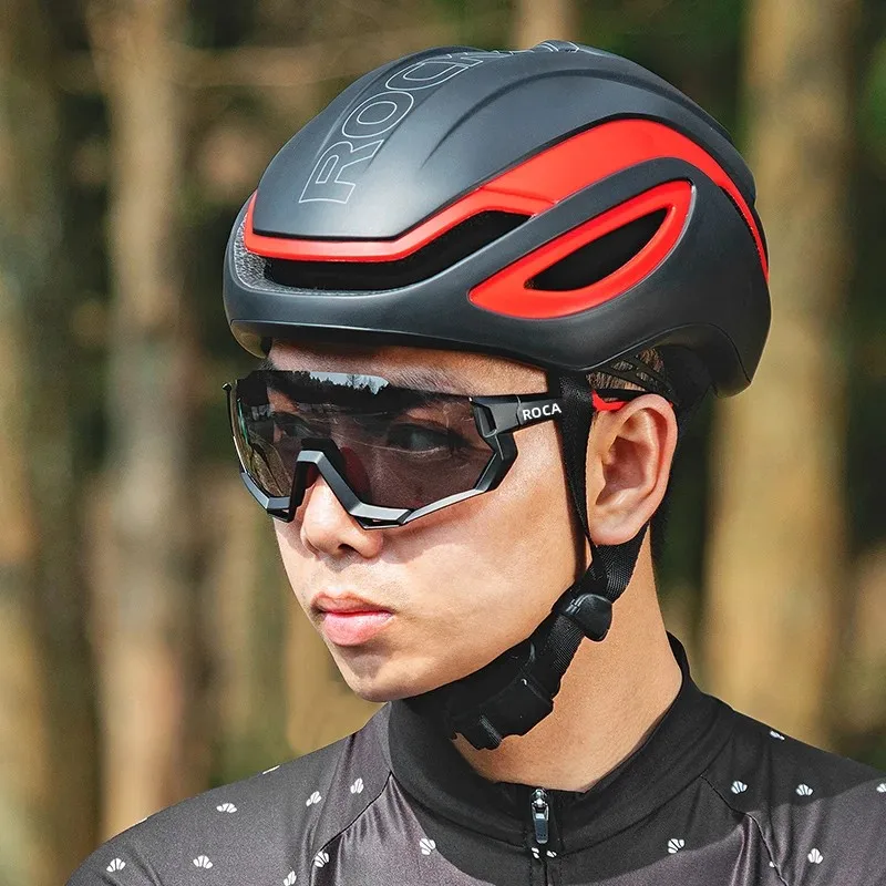 ROCKBROS-casco de bicicleta ultraligero para hombre, casco de ciclismo moldeado integralmente, hebilla de presión magnética, gorra de seguridad para bicicleta de carretera de 55-61cm