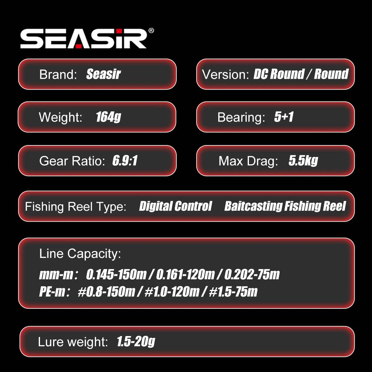 Carrete de pesca SEASIR DC-ROUND, carrete de tambor DC, engranajes de latón, para agua salada, lanzado largo, ultraligero de 164g, para agua dulce y marina.