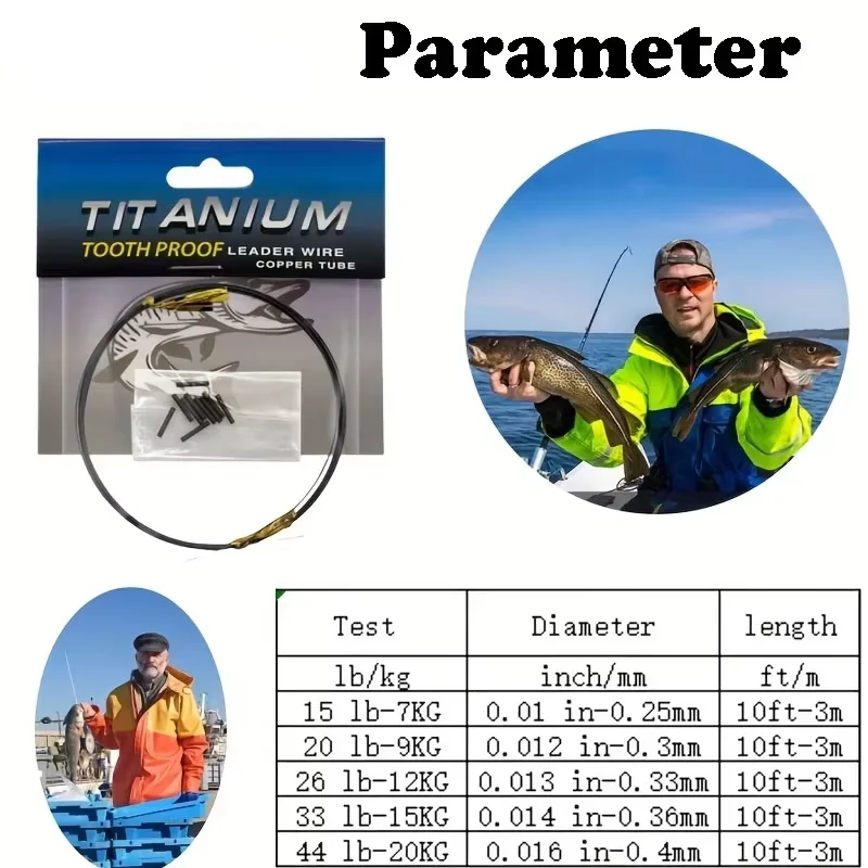 Línea de Pesca de Titanio Resistente a Mordeduras de 10 pies – Cable de Pesca de Agua Salada con Fundas de 15LB-44LB