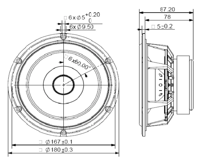 2. Aquí está la hoja de datos del altavoz Peerless P830875 con chasis negro, pero la dimensión es la misma que la de P830883, como sigue