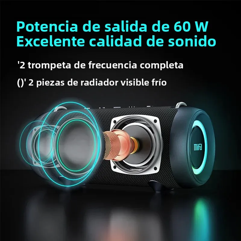 Altavoz Bluetooth mifa A90 con potencia de salida de 60W, altavoz Bluetooth con amplificador Clase D, excelente rendimiento de bajos, altavoz para camping.
